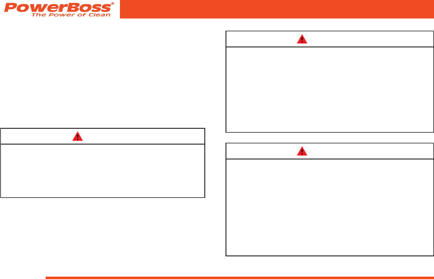 persons other than those specifically authorized by PowerBoss. This warranty does not apply to damage from transportation, alterations by unauthorized