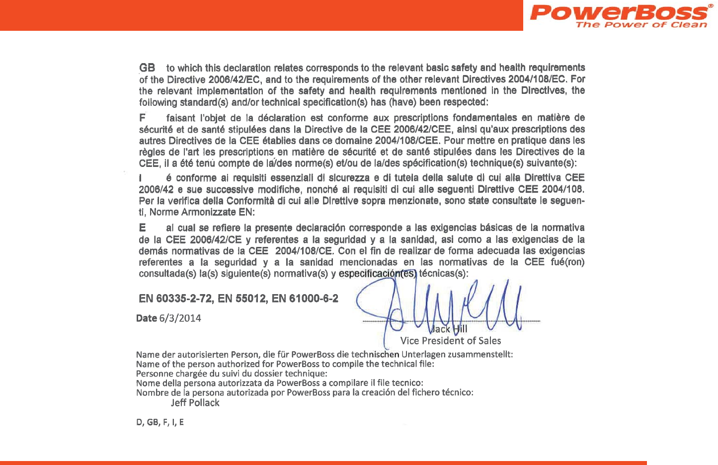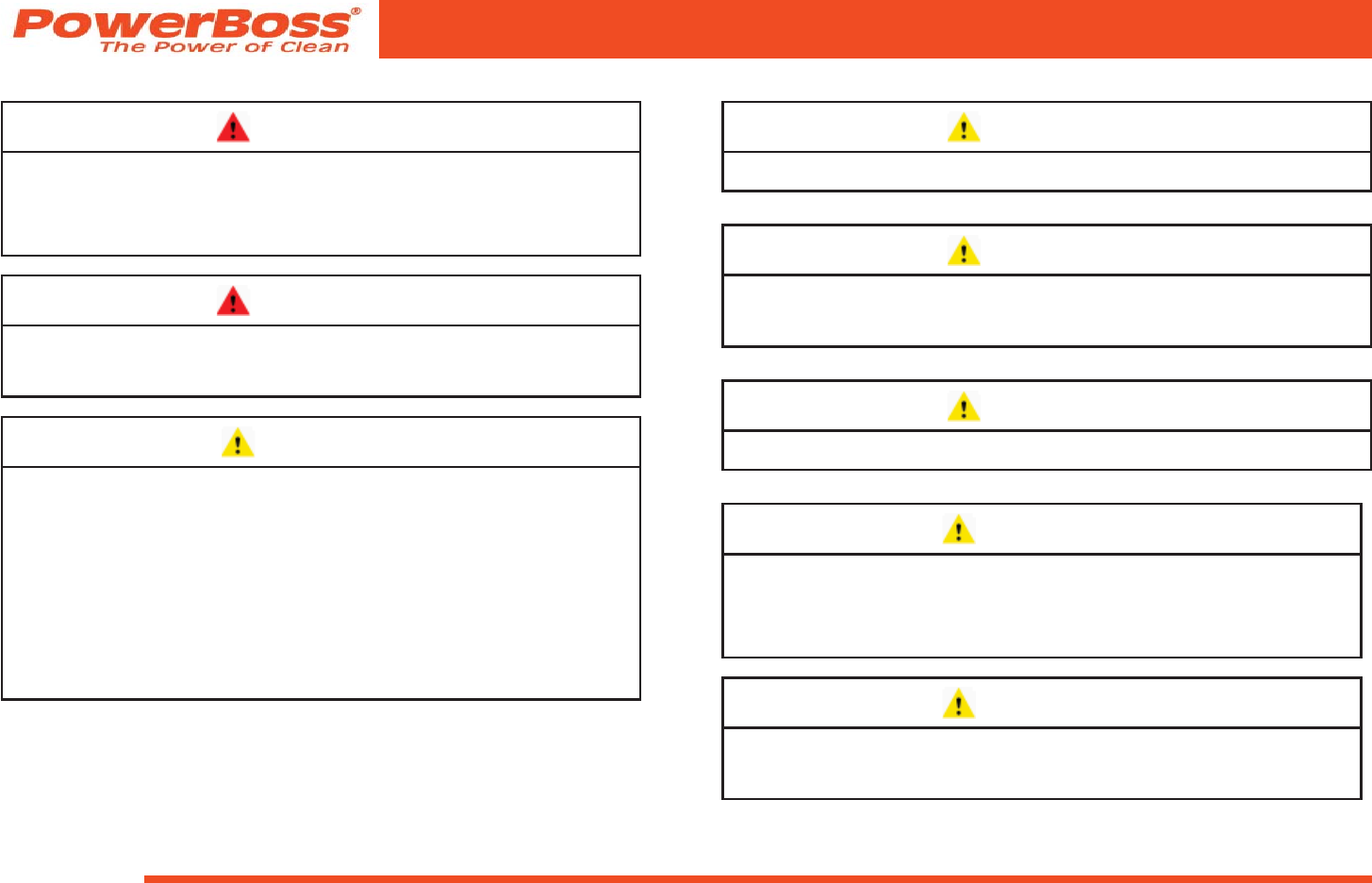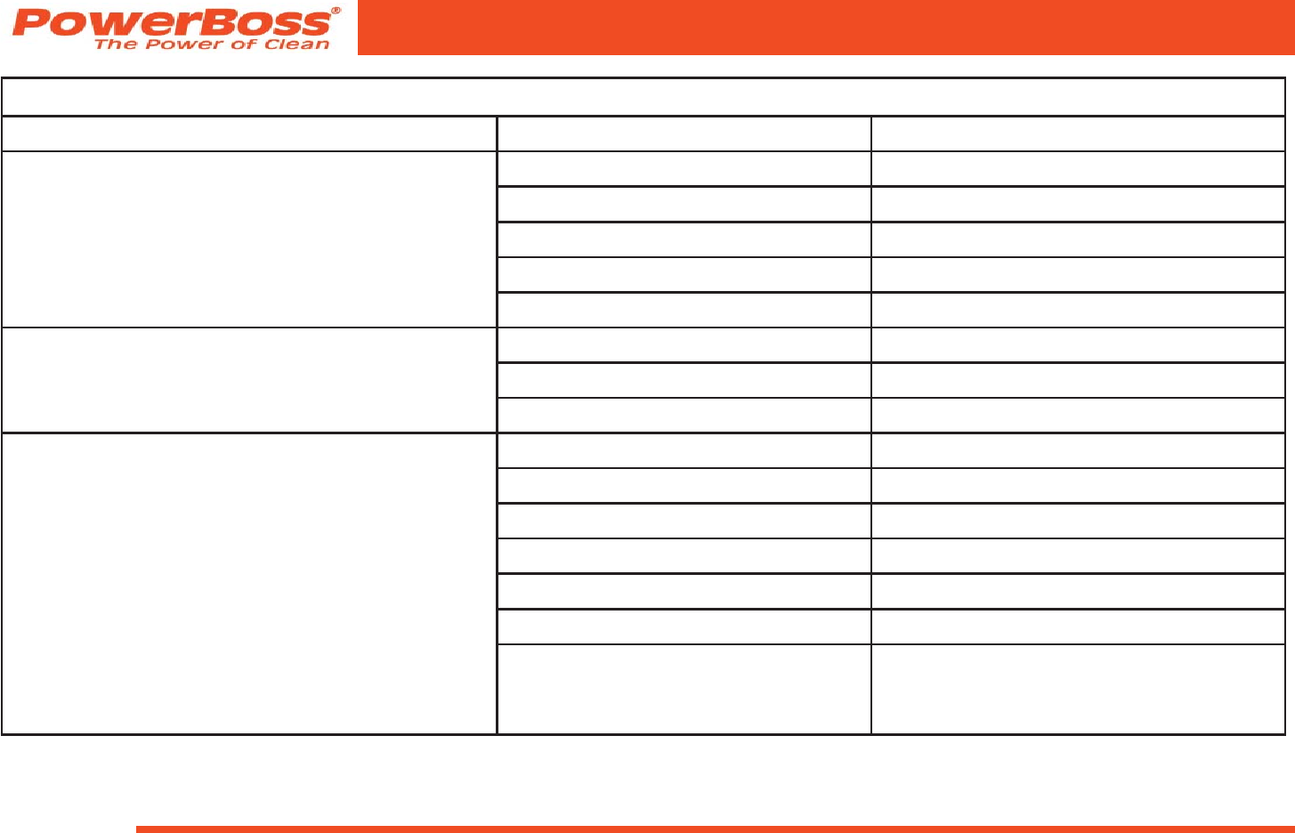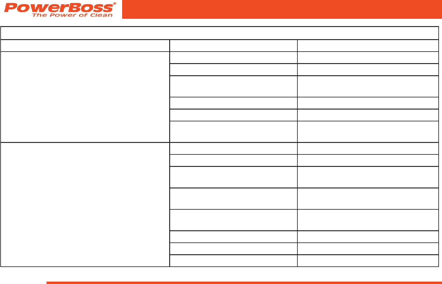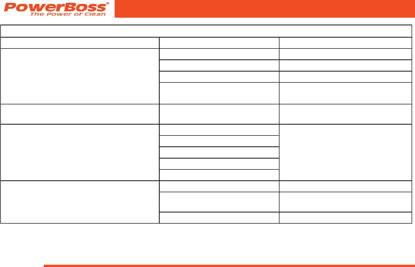 the U.S.A. and Canada should contact their local distributor for export warranty policies. PowerBoss is not responsible for costs or repairs performed by