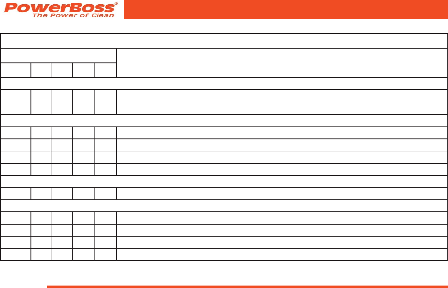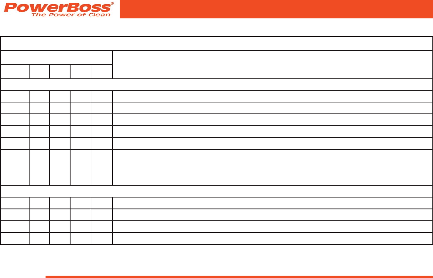 Parts may be ordered by phone, fax, or email from any PowerBoss® parts and service center. Before
