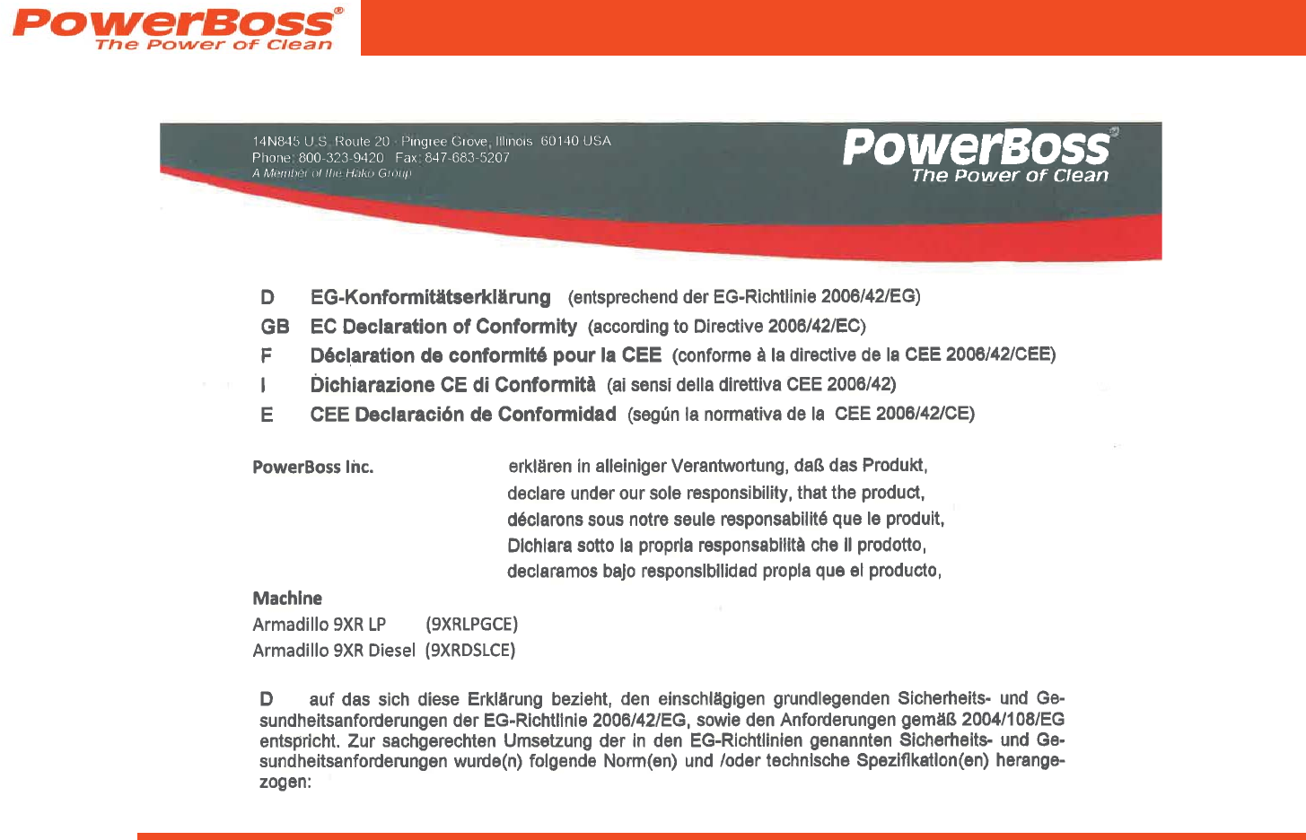 4100033UM Armadillo 9X Rev E Powerboss 9xr Ride On Floor Sweeper Operators Manual
