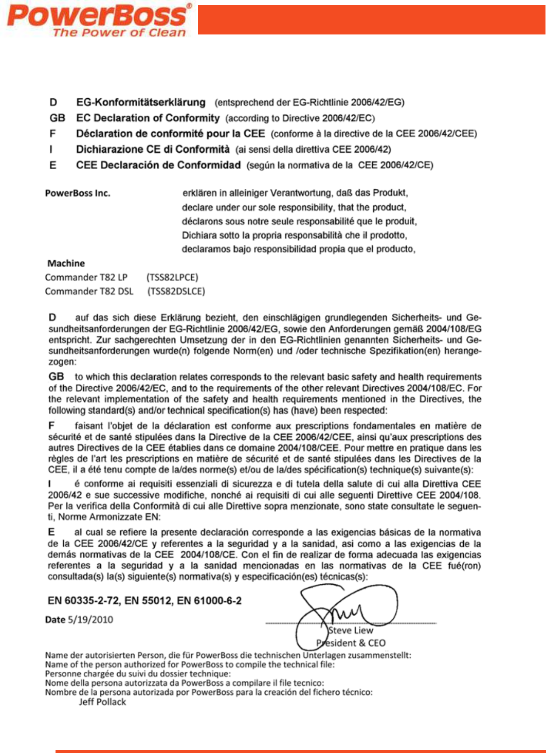 PowerBoss,Inc 175 Anderson Street P.O. Box 1227- Aberdeen North Carolina 28315