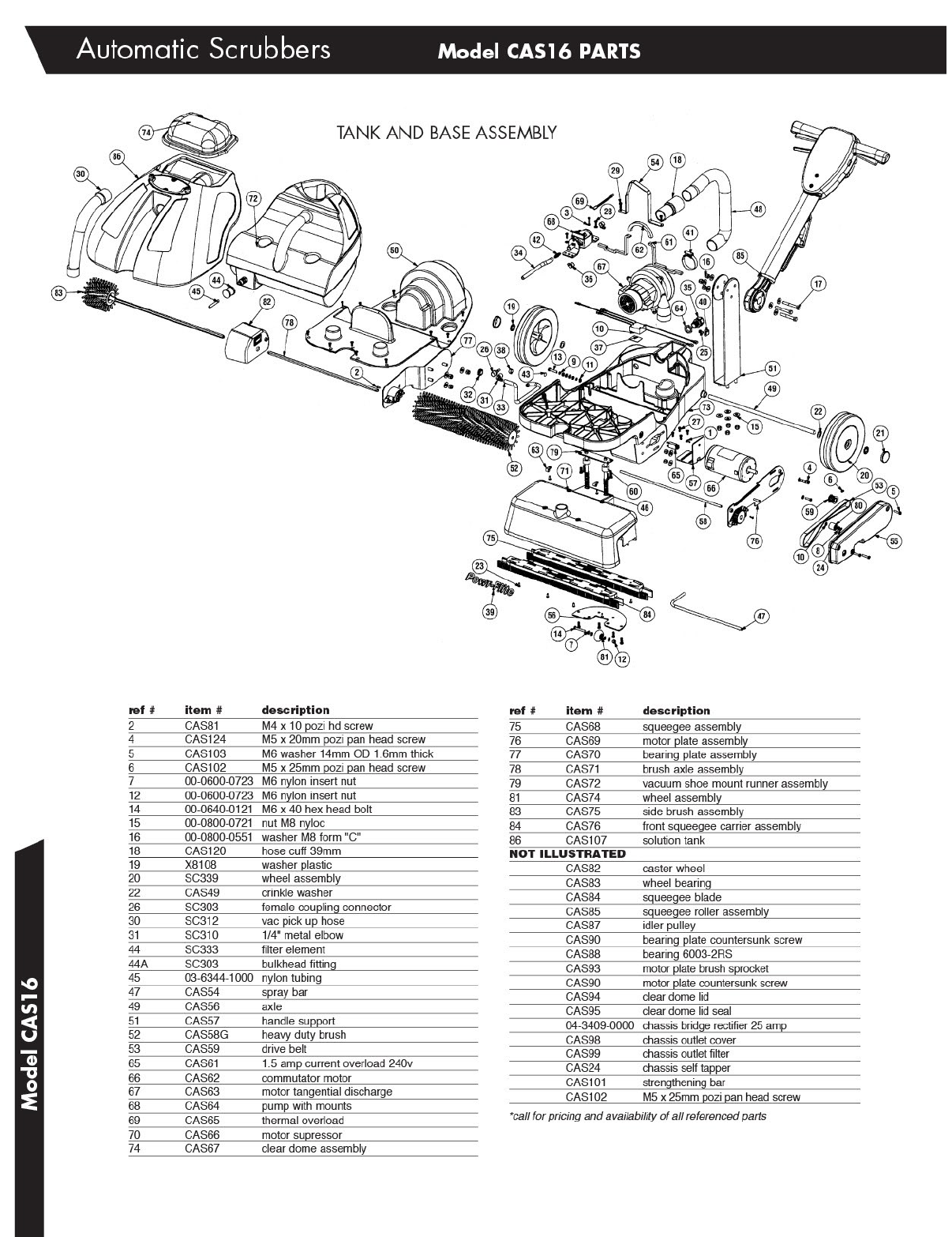 Sweepscrub Powr Flite Cas16 Walk Behind Floor Scrubber Parts List User Manual