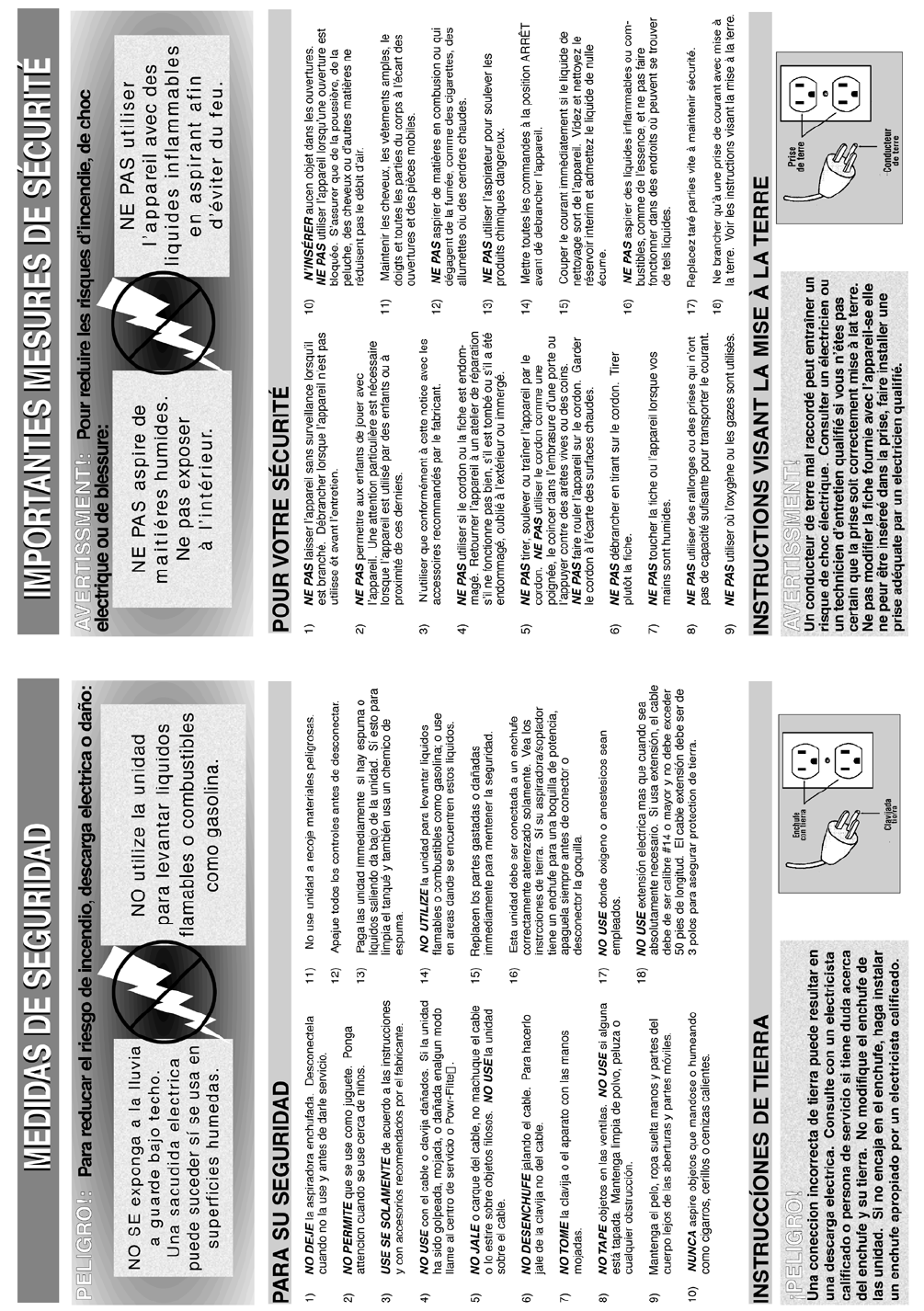 SAFETY PRECAUTIONS (Spanish) (French)................ 4-5