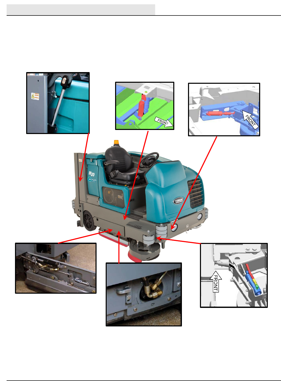 - M20_M30 Hydraulic Component Locator Hopper Cylinder - Scrub Head Cylinder - Side Brush Extend CylinderSide Squeegee Cylinder - Main Brush Motor