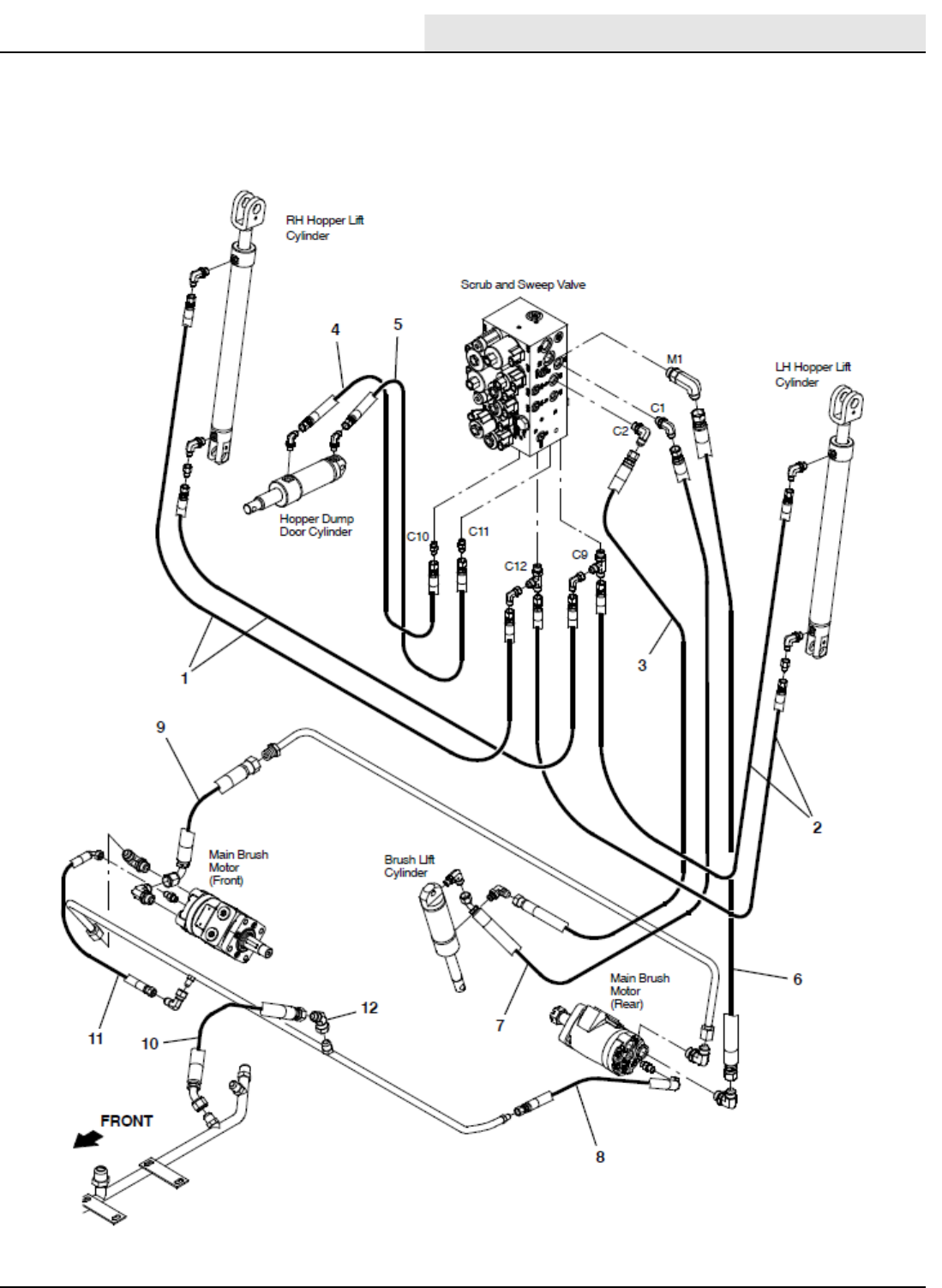 - M20_M30 Hydraulic Component Locator Hose Group - Brush and Hopper