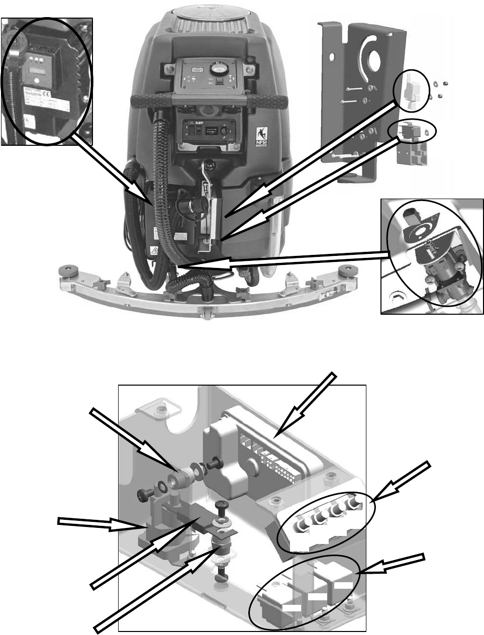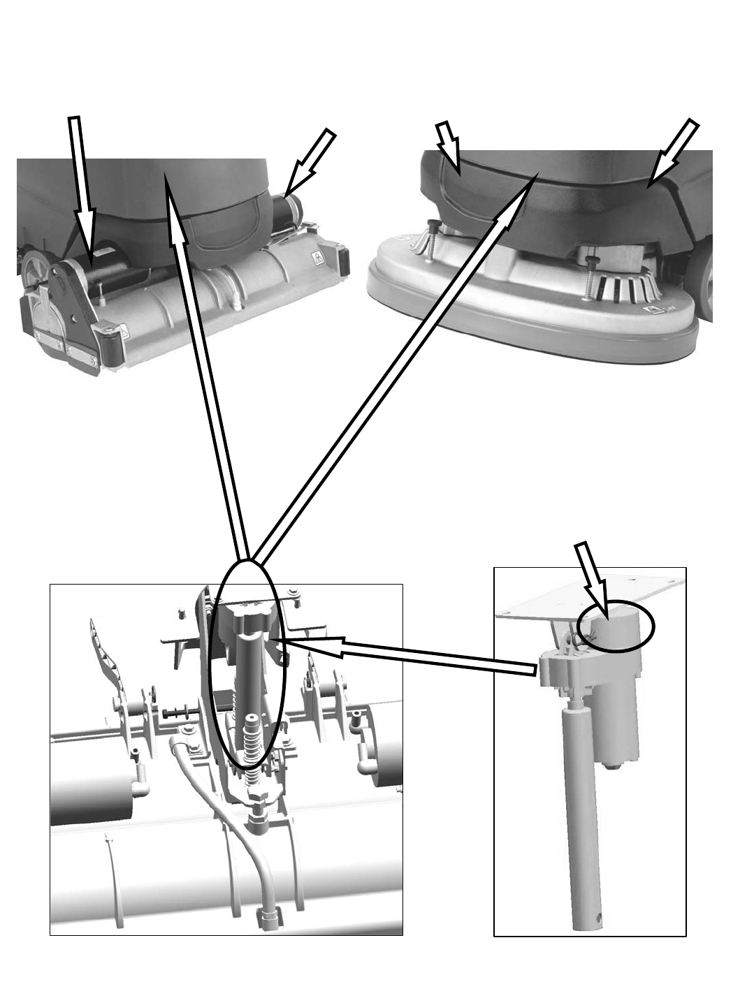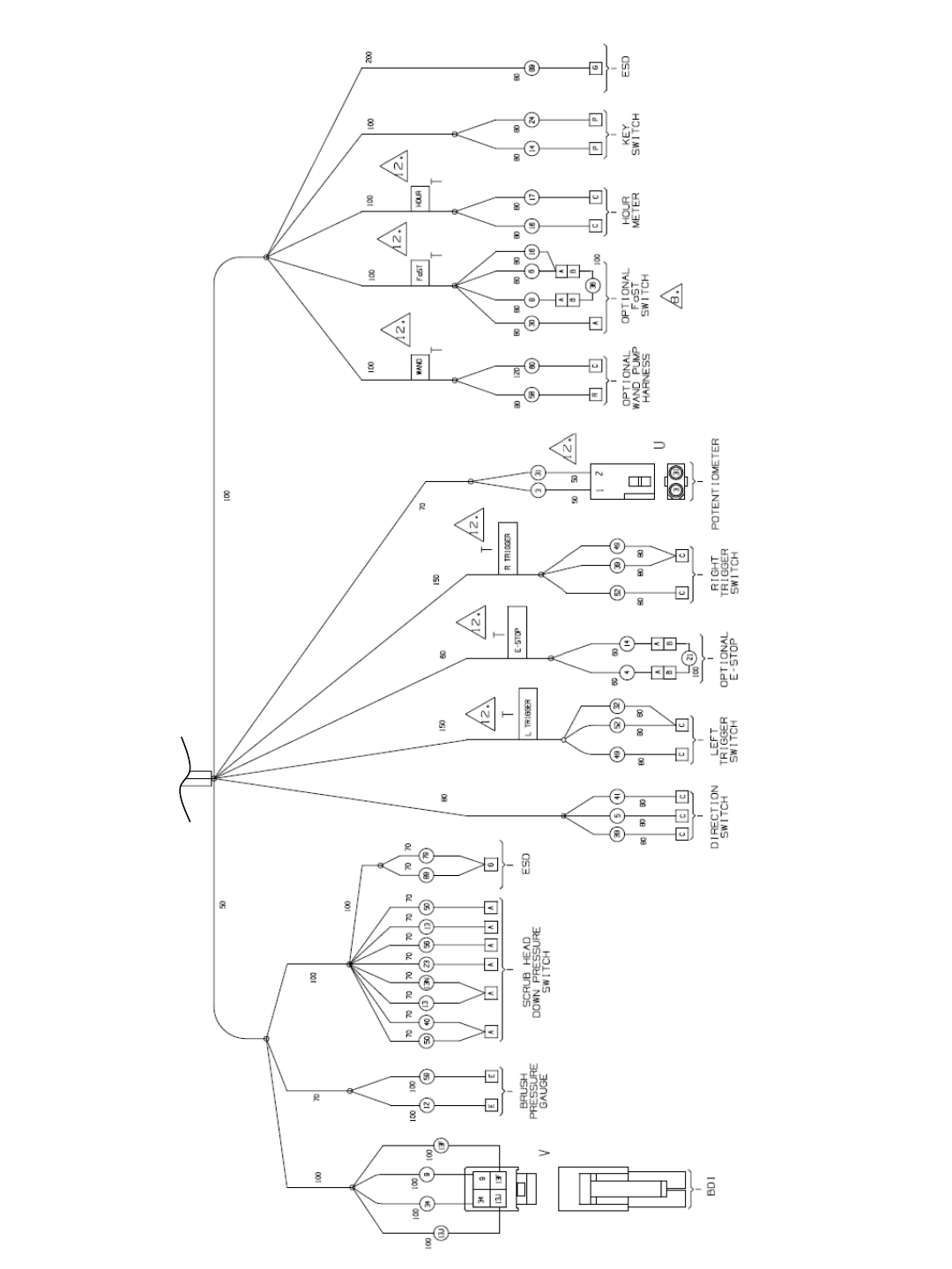 CONDITIONS: Key ON, scrub head lowered for cleaning, propel engaged, conventional scrub selected