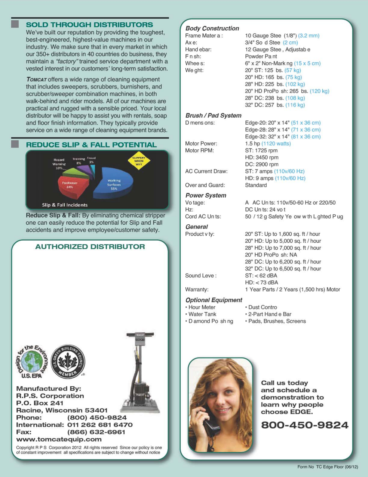 EDGESTICK BROCHURE TC Tomcat Edge Orbital Floor Scrubber Specifications