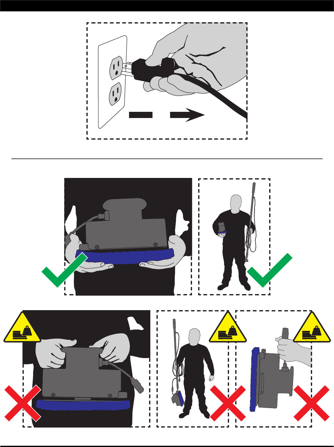 • Turn the machine OFF and unplug the power cord from wall AC power