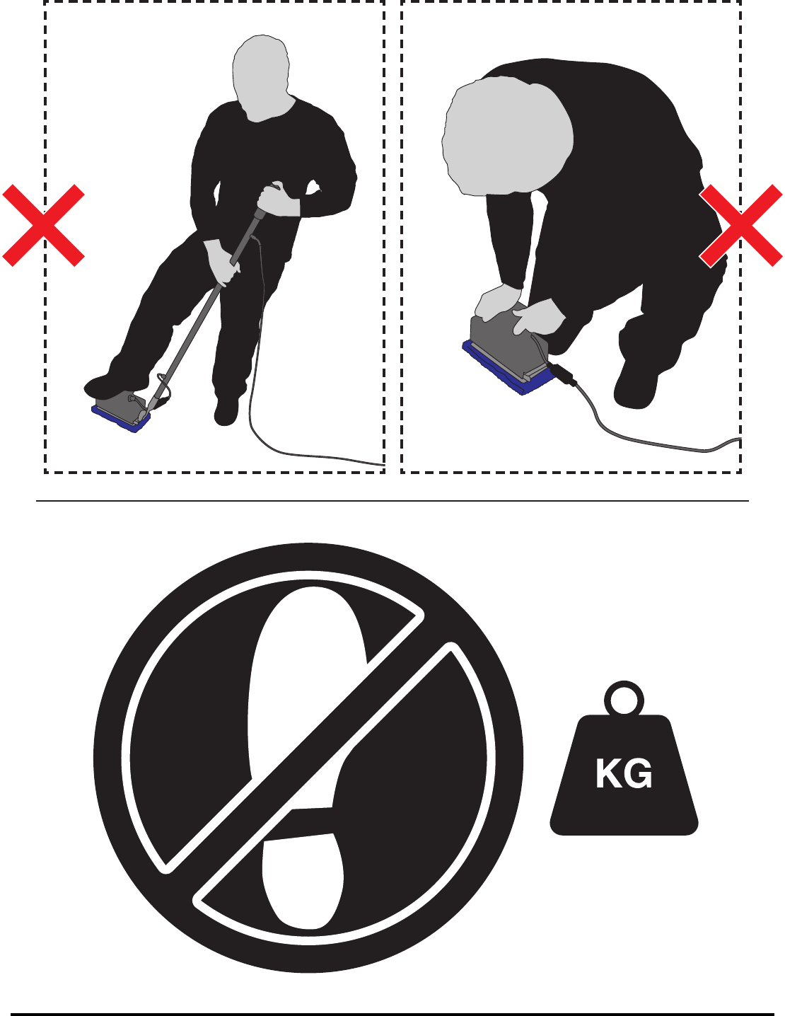 • Remove loose objects from the fl oor that could be projected from the oscillating pad