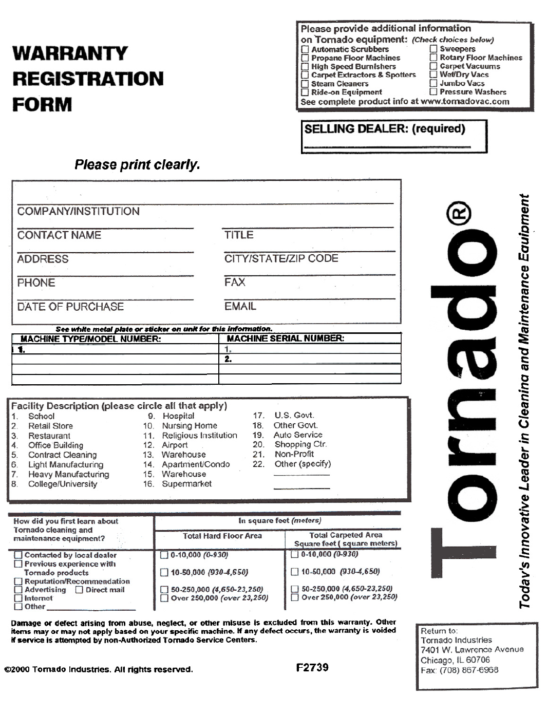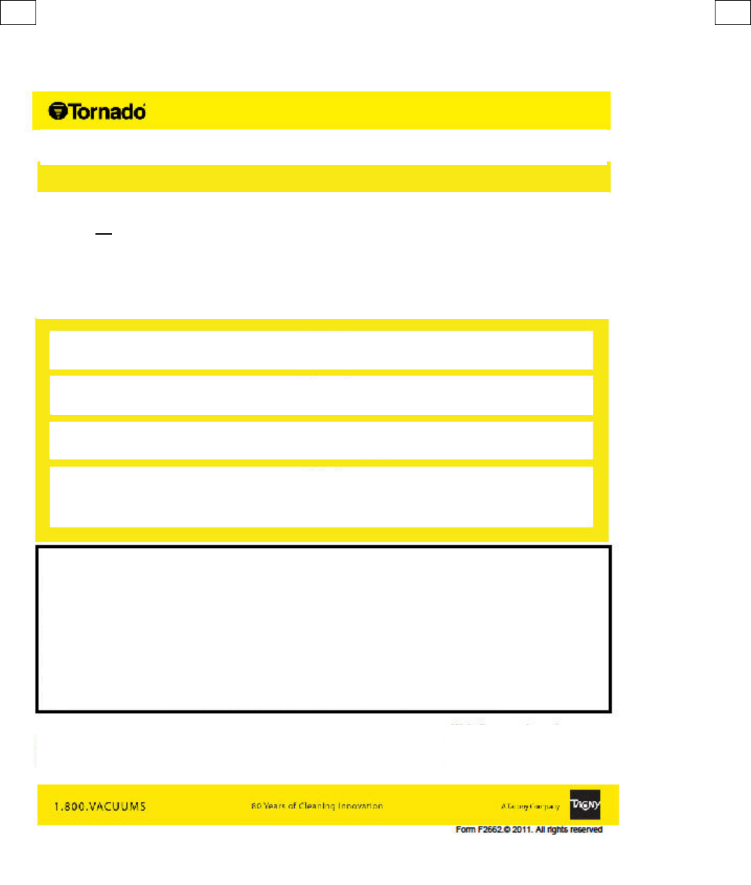 3. La garantie commence à la date de la vente au consommateur ou, à la discrétion de Tornado, 6 mois après que le détaillant ait