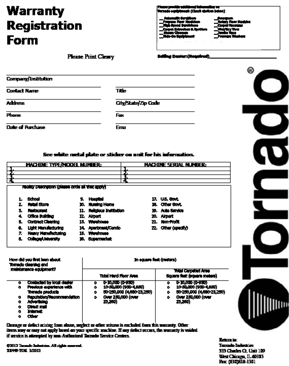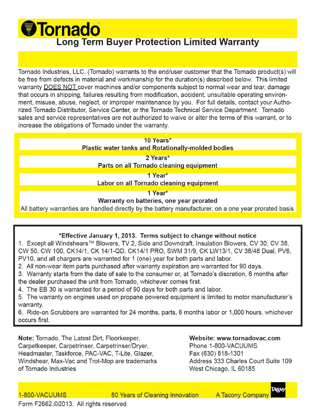 Form No. L8778AB 03/13 ©Tornado Industries, LLC. All rights reserved