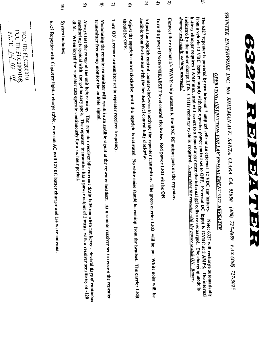 Swintek 200010R Receiver portion of transceiver User Manual 63764