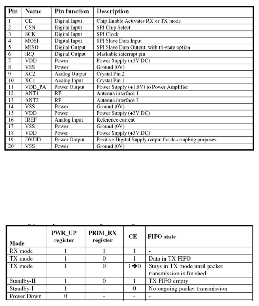 The working mode is determined by register PRIM_RX, register PWR_UP and CE, as shown in the