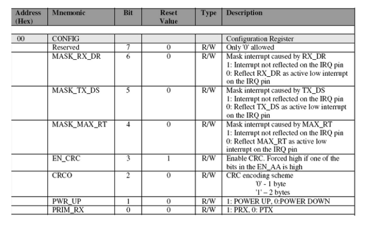 SPI_RW_Reg(WRITE_REG + CONFIG, 0x0e);