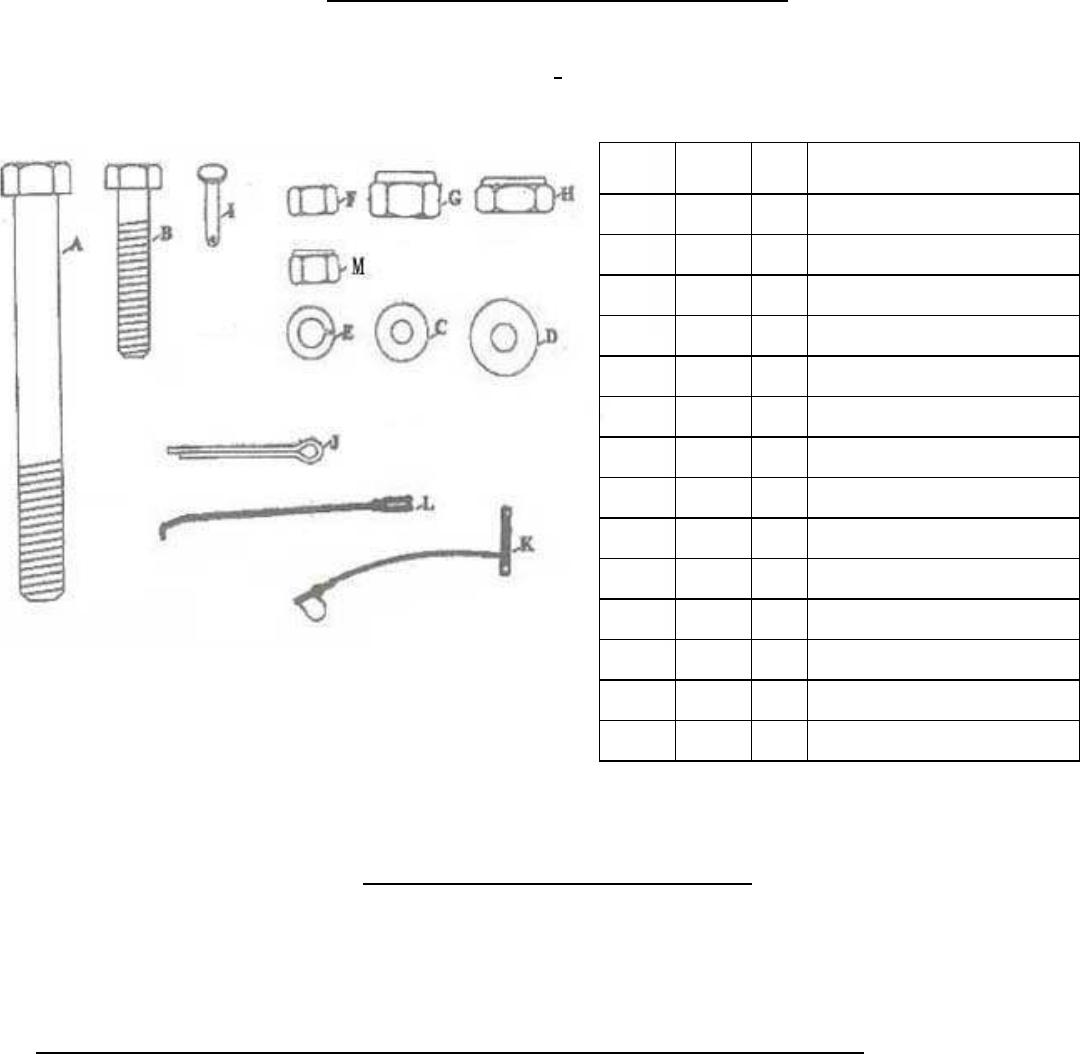 3. Layout and identify parts included in the hardware pack. (see parts listing below)