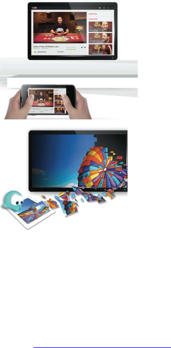 Share your iOS or Android devices by mirroring the screen to your TV.