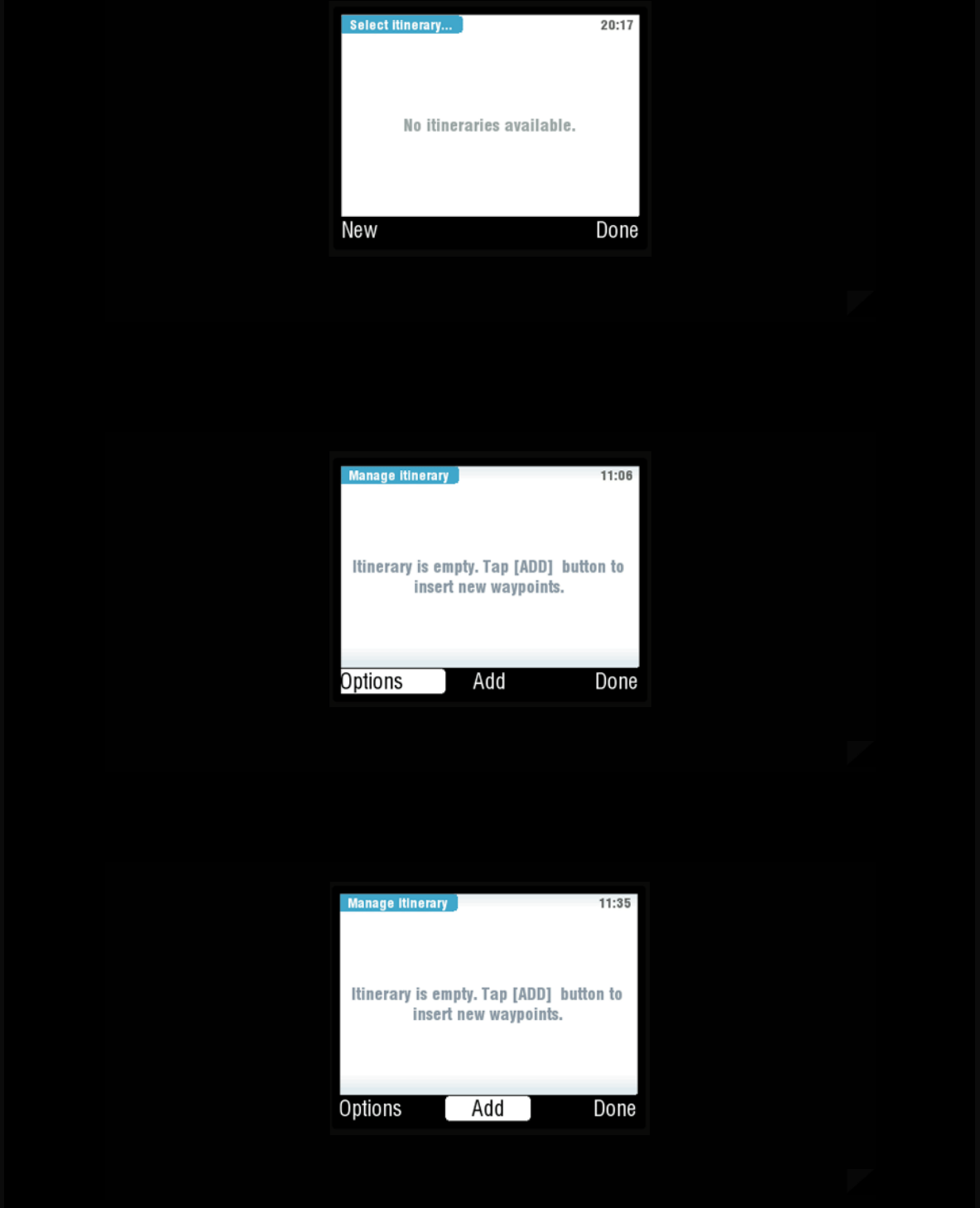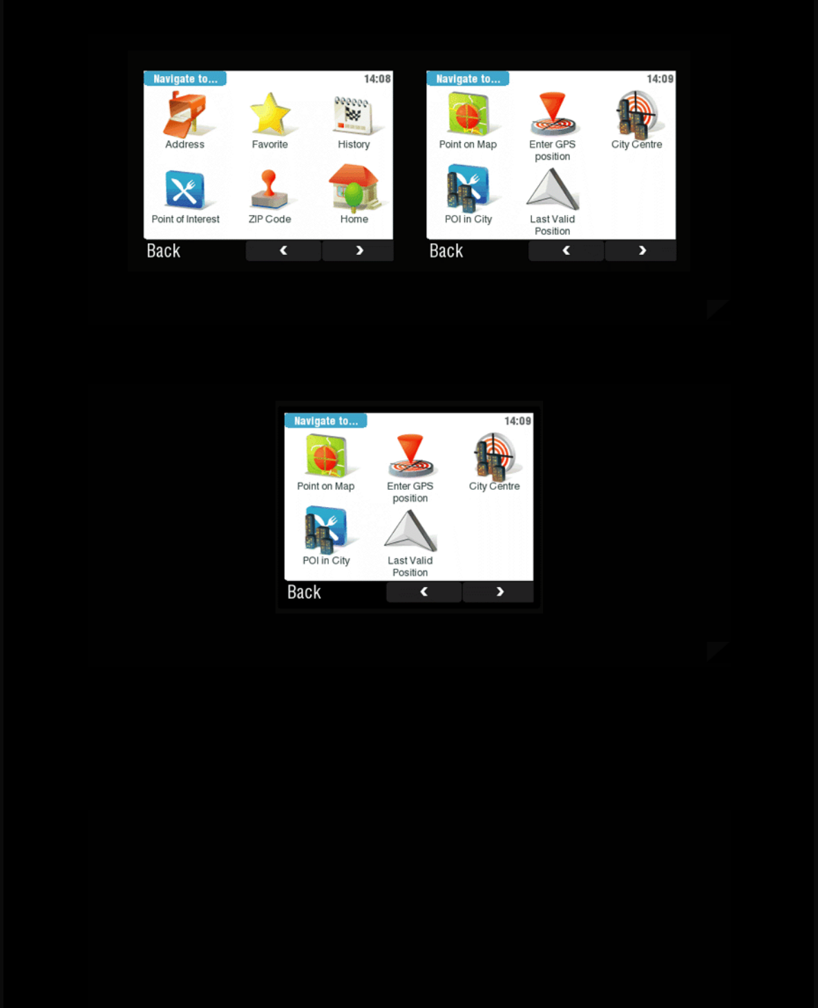 several options like point on map, history, points of interests or enter GPS position. After successful entering the