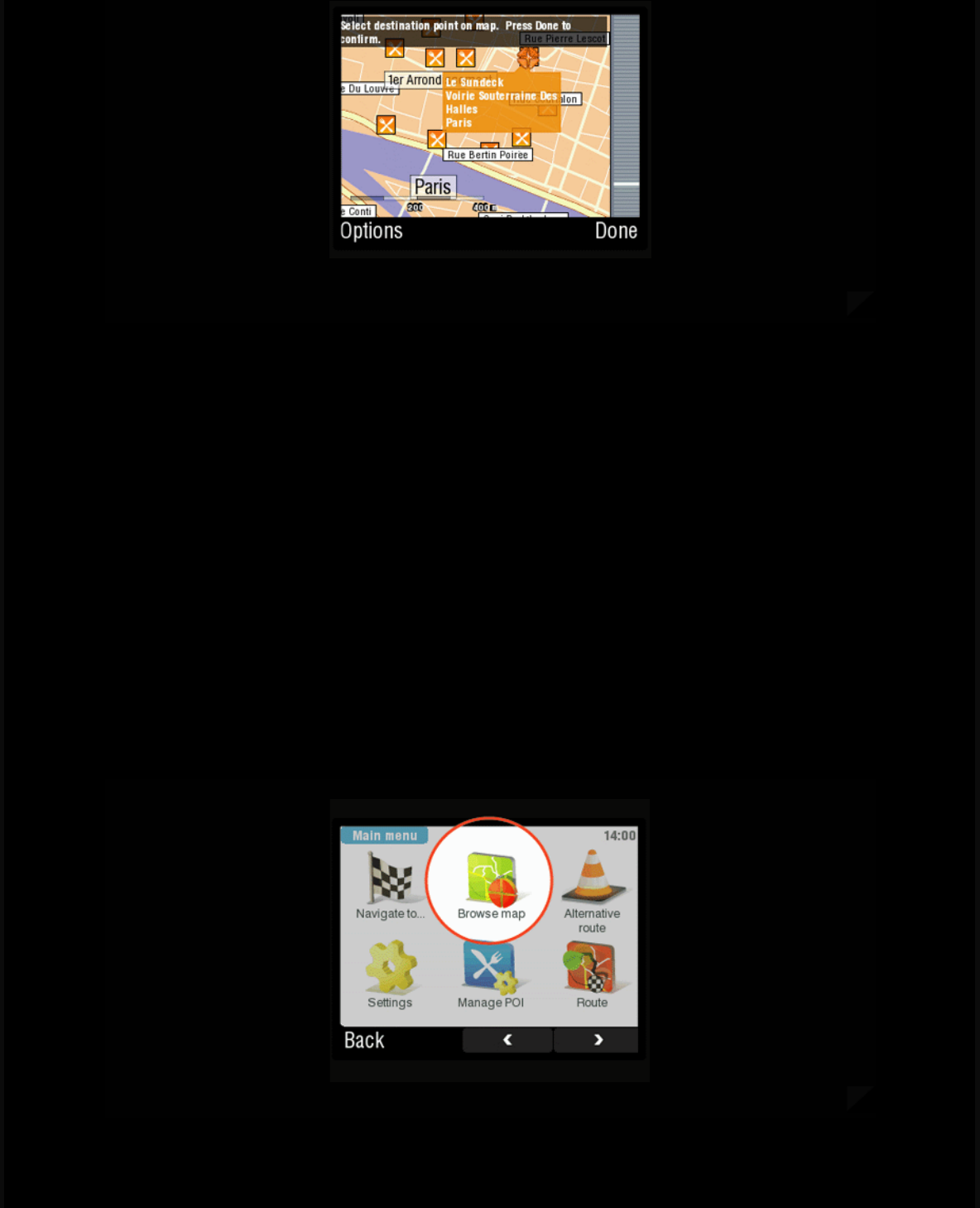 Browse map is basic function that allows you to scroll the entire map and search for your desired locations or POI