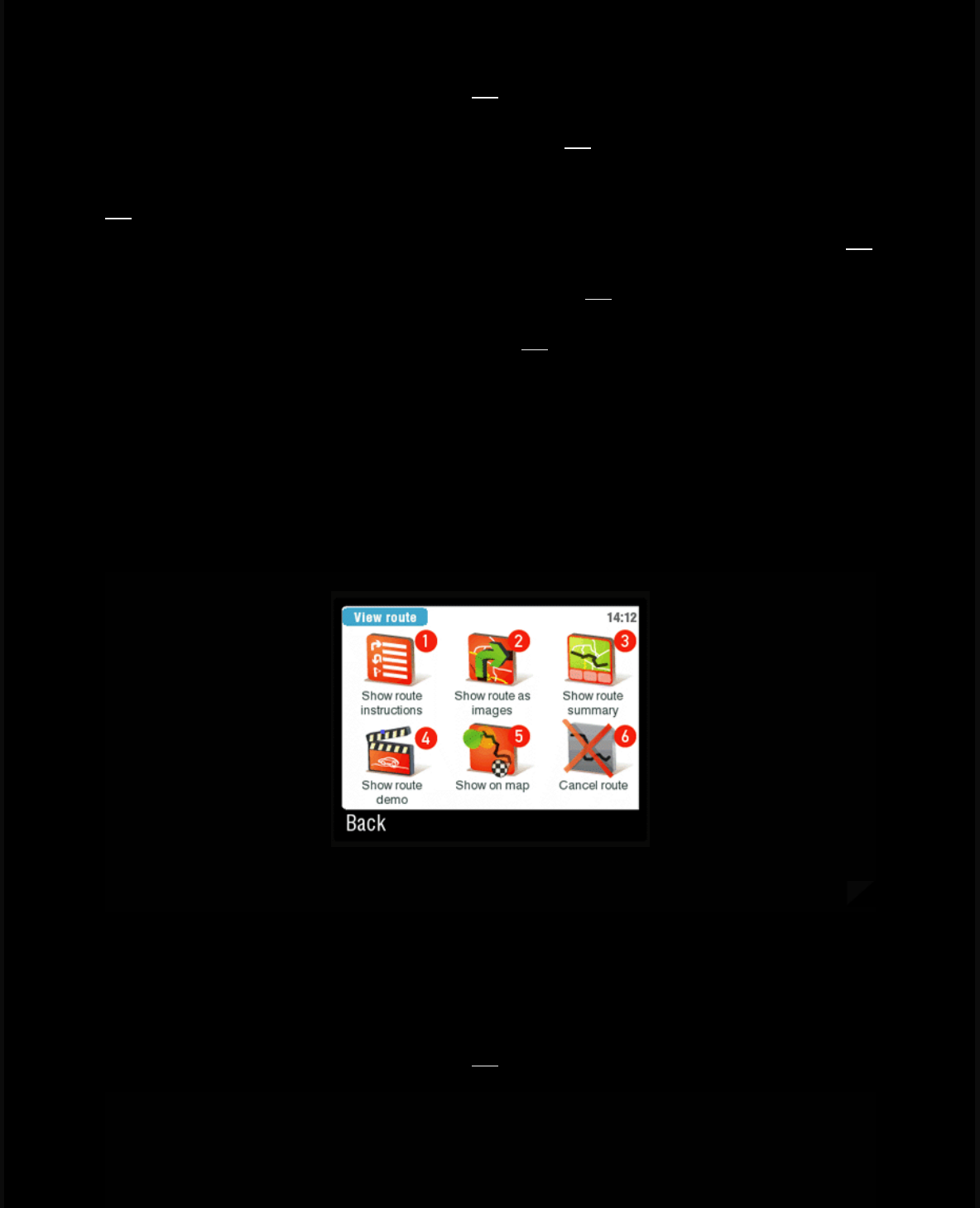 6) Route - you have to first planned your route to get access to route options. If you haven't planned your route,