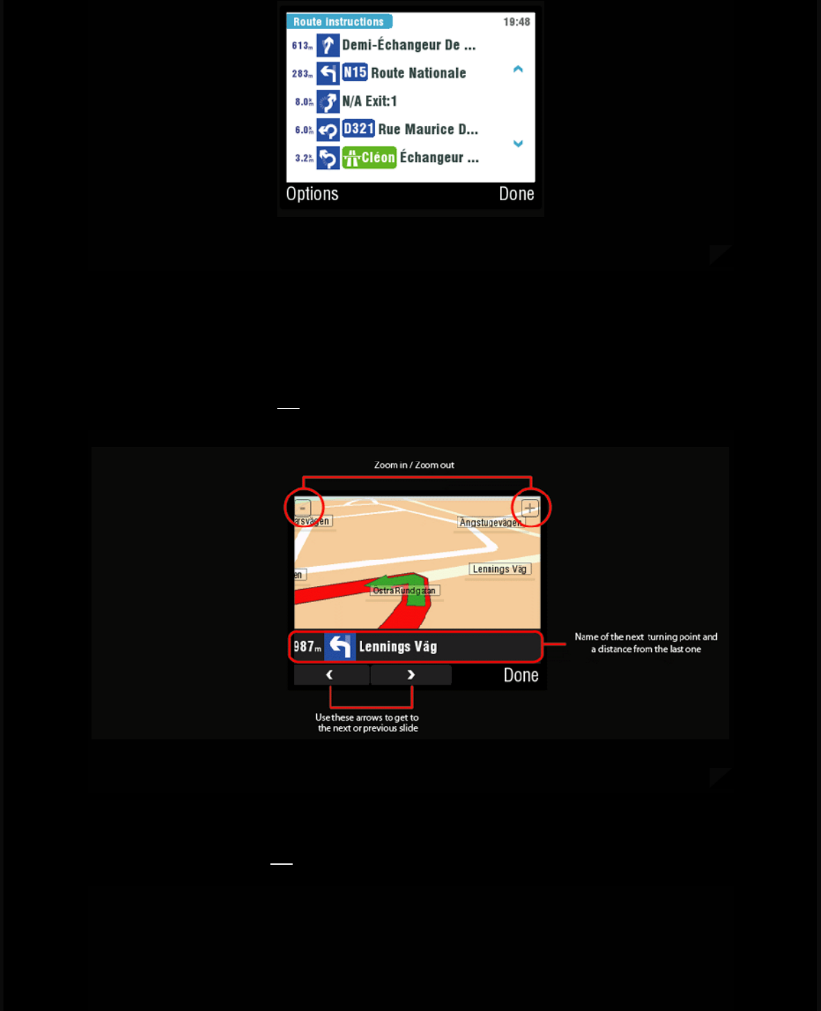 whole route in image slides or even watch the route preview by using the route demonstration option. (up)