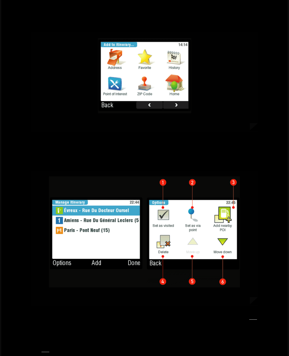 Itinerary function | How to use Alternative route function | How to manage Points Of Interest (POI) | Useful tips