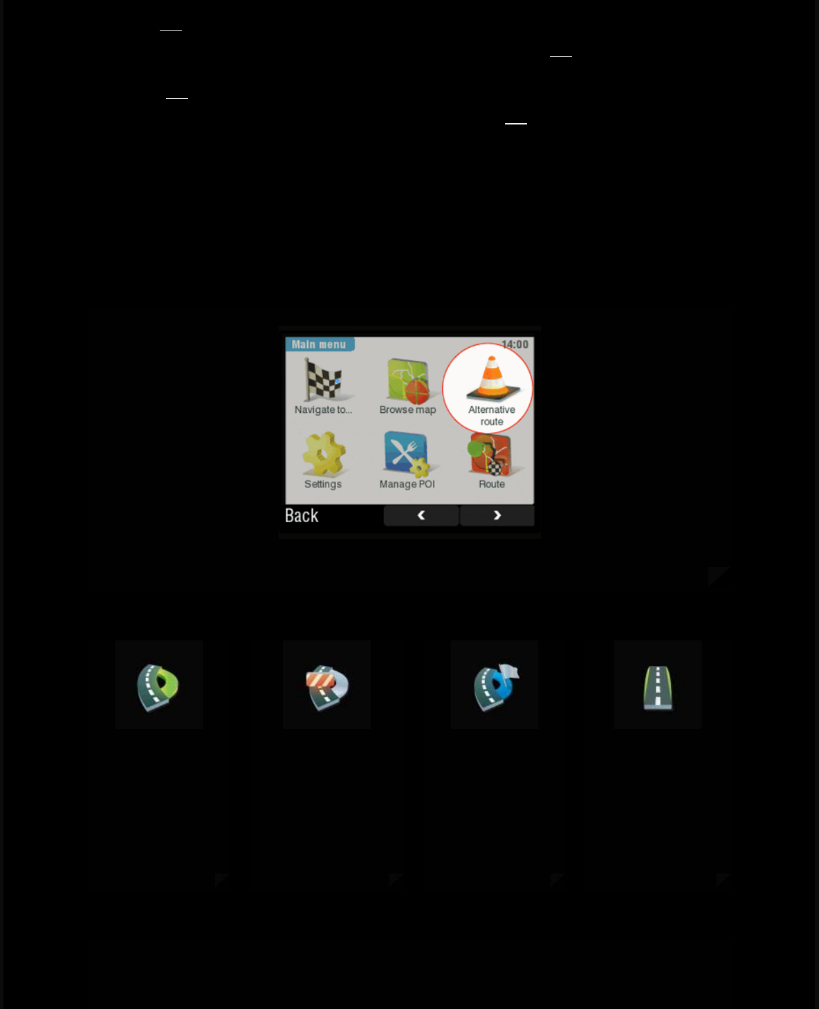 with the route button, alternative route button is also available after you'll plan your main route. (up)