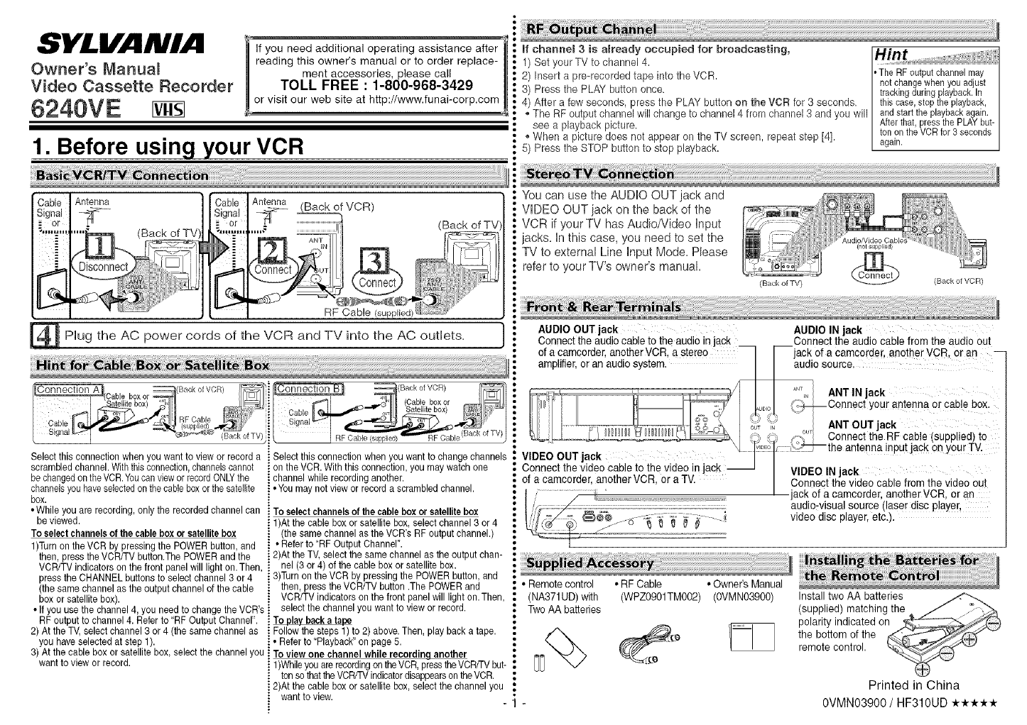 SYLVANIA VCR Manual L0520738 SYLVANIA VCR Owner's Manual, SYLVANIA VCR installation guides