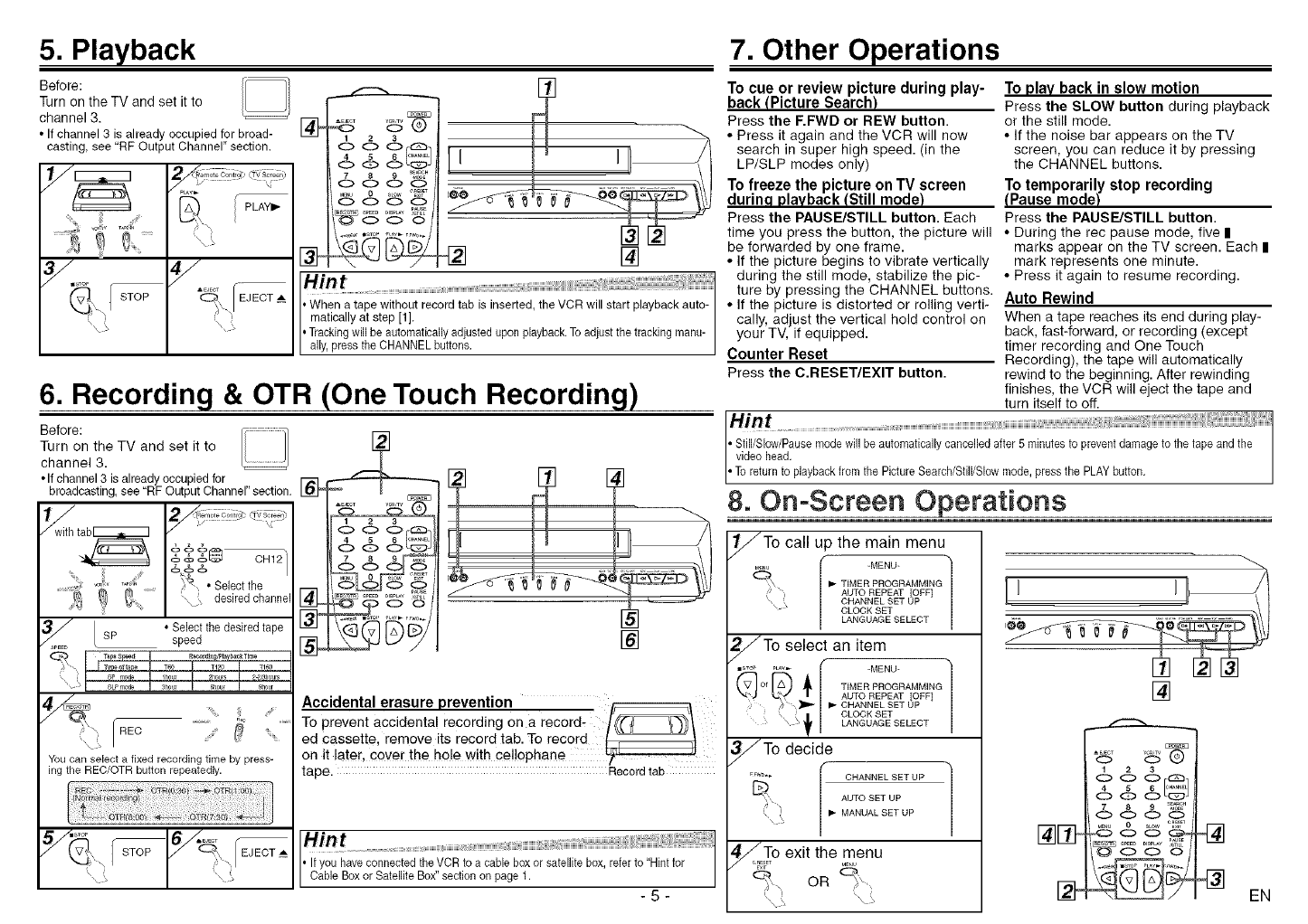 2) Insert a pre-recorded tape into the VCR. . The RF output channel may