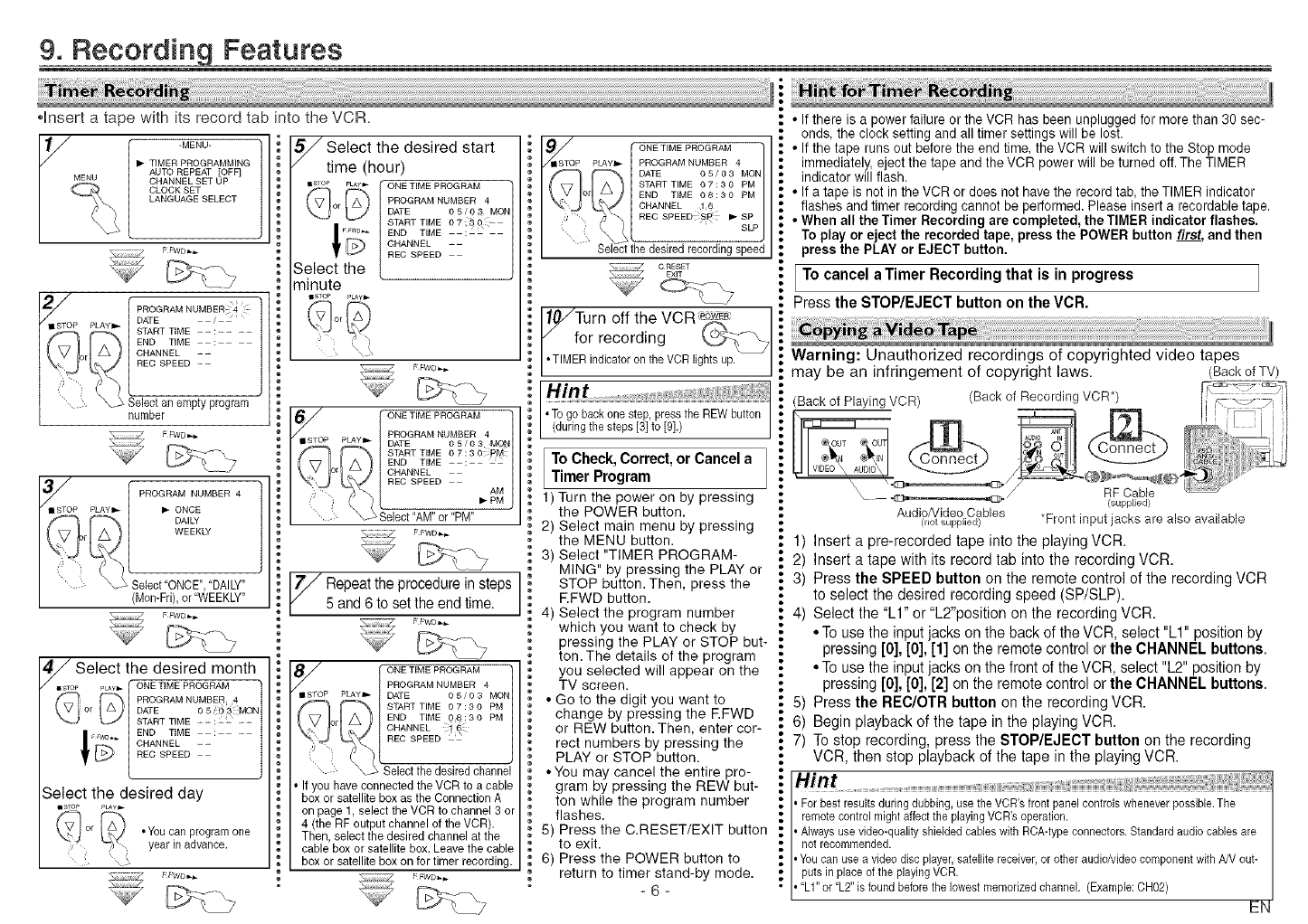 of a camcorder, another VCR, or a TM / Connect th'e video cable from the video out