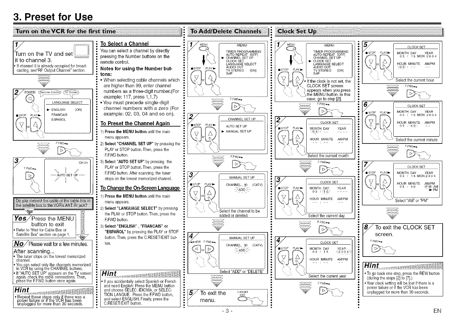 • 4) After a few seconds, press the PLAY button on the VCR for 3 seconds.
