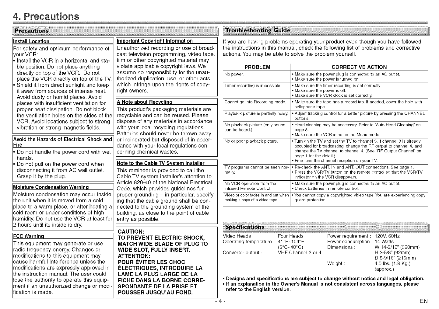 • • The RF output channel will change to channel 4 from channel 3 and you
