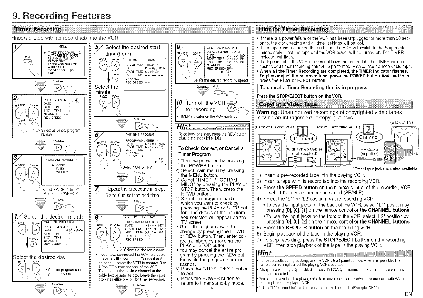 of a camcorder, another VCR, or a TV. IConnect th'e video cable from the video oul