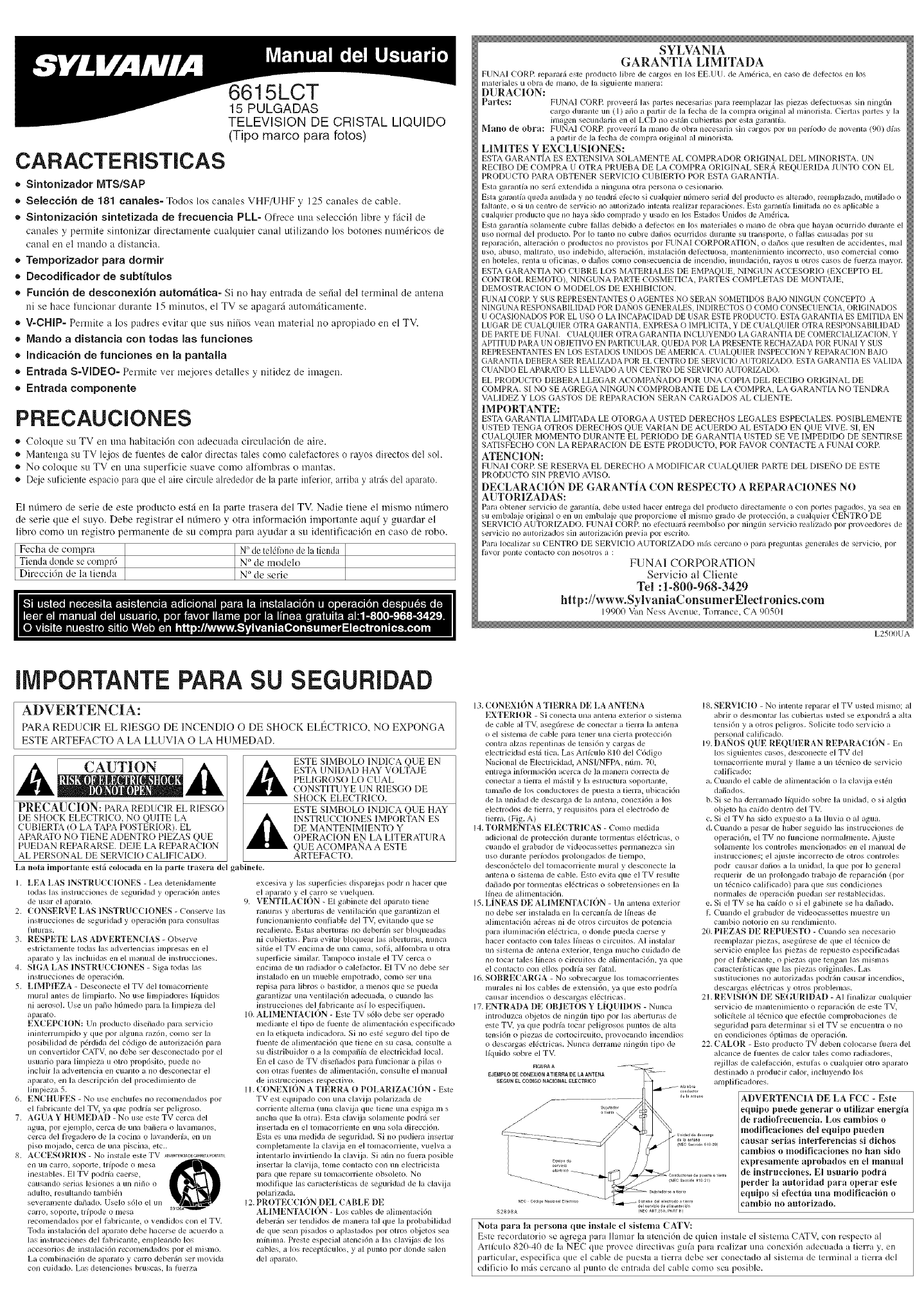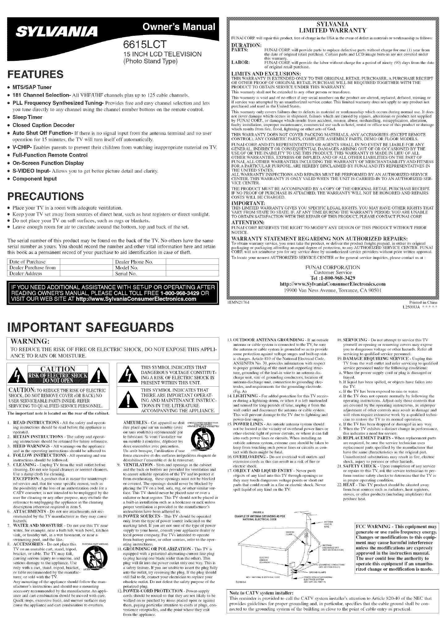Sylvania 6615LCT User Manual LCD TELEVISION Manuals And Guides L0608636