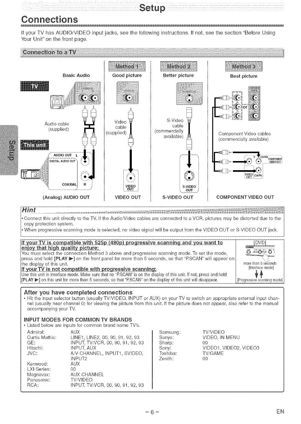 If your TV has AUDIO/VIDEO input jacks, see the section