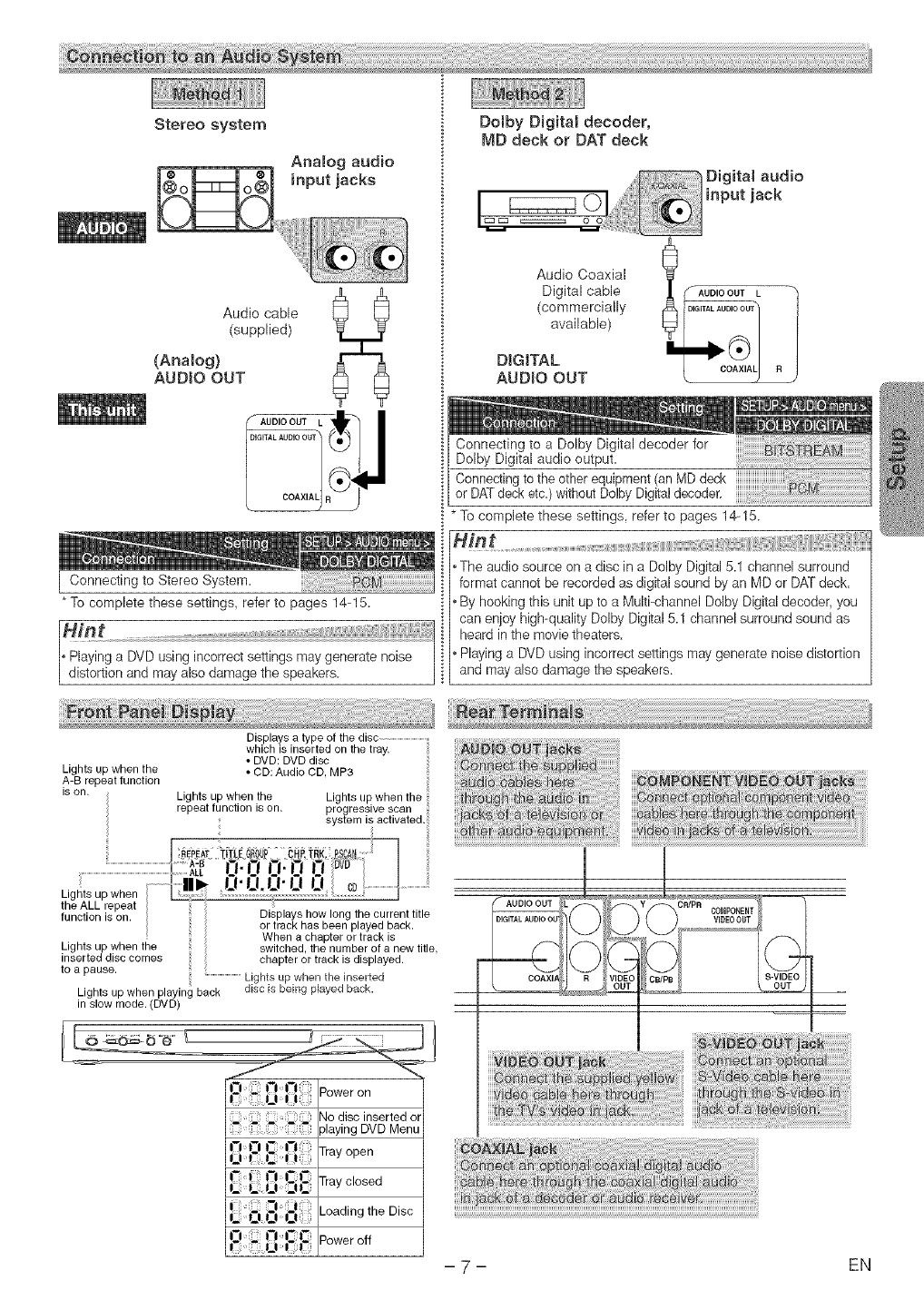 1) Connect the AUDIO/VIDEO output jacks of this unit to the