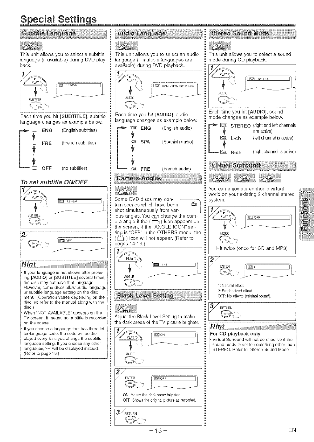 _*To set virtual surround on/off. • to set virtual surround on/off.