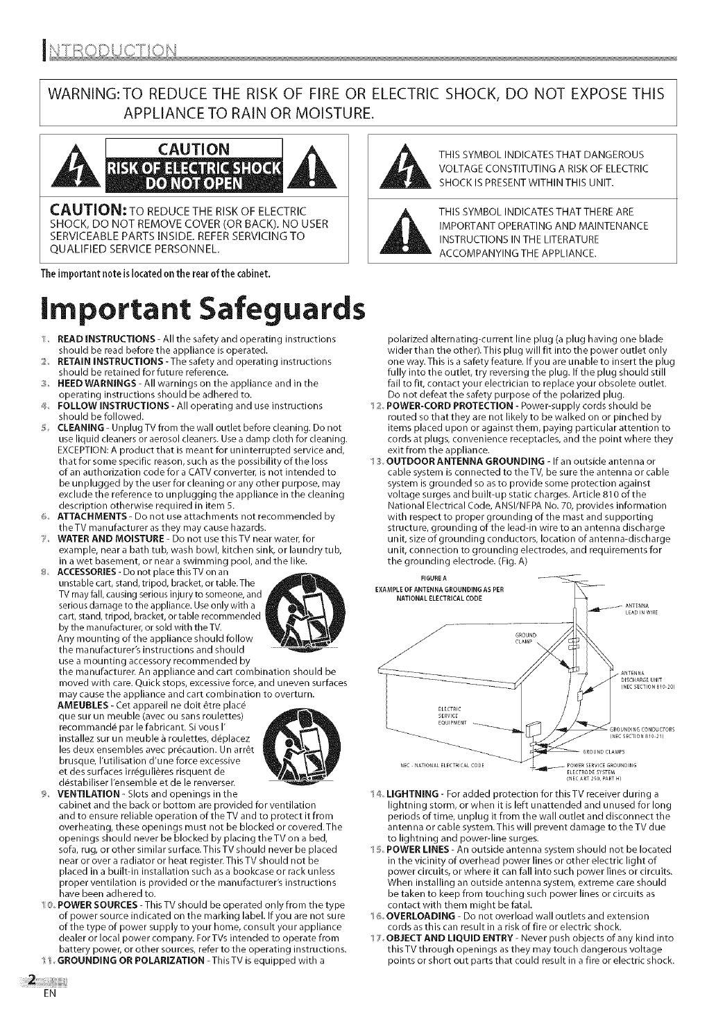 %GROUNDING OR POLARIZATION -ThisTV is equipped with a