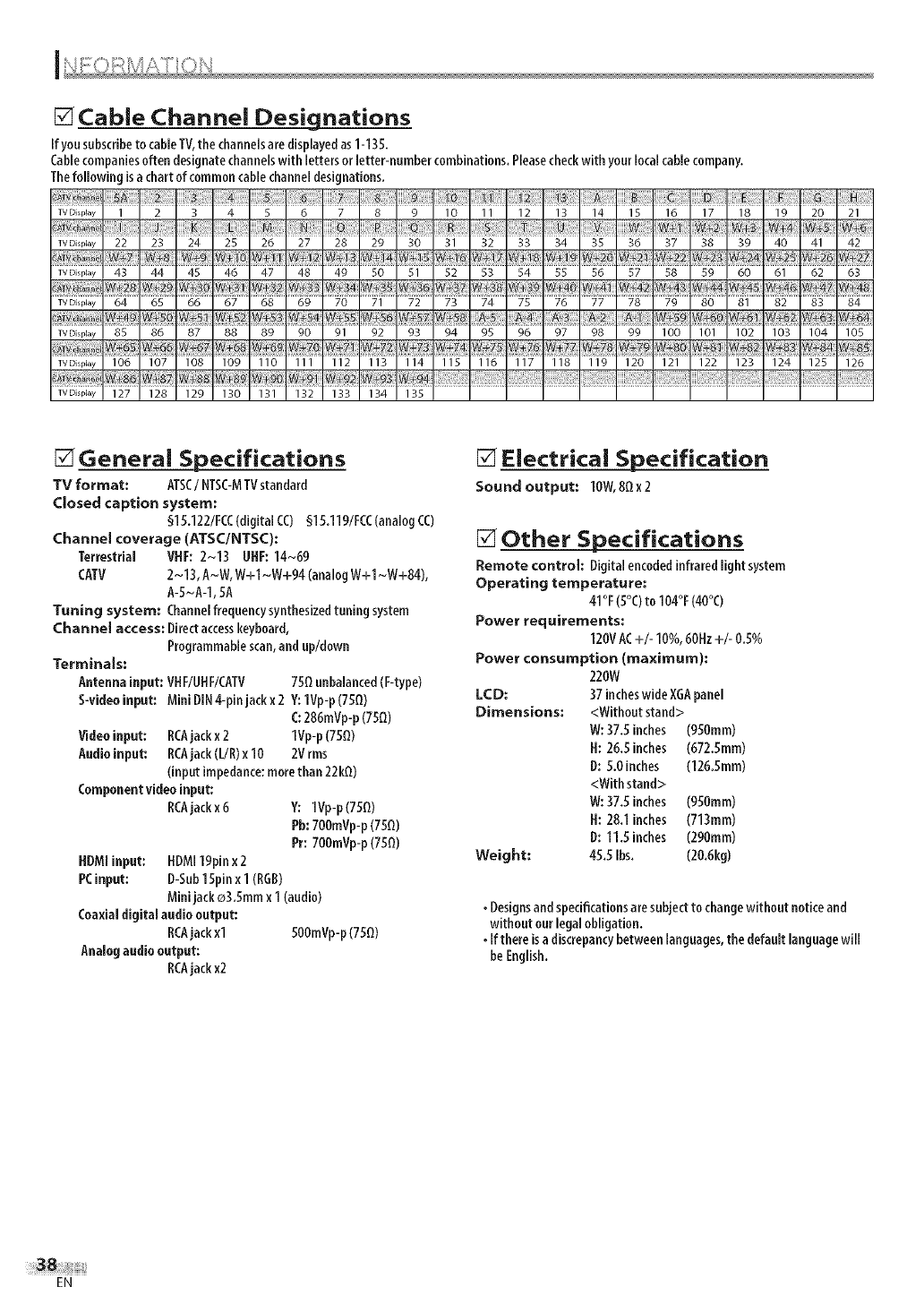 LCD: 37 incheswideXGApanel