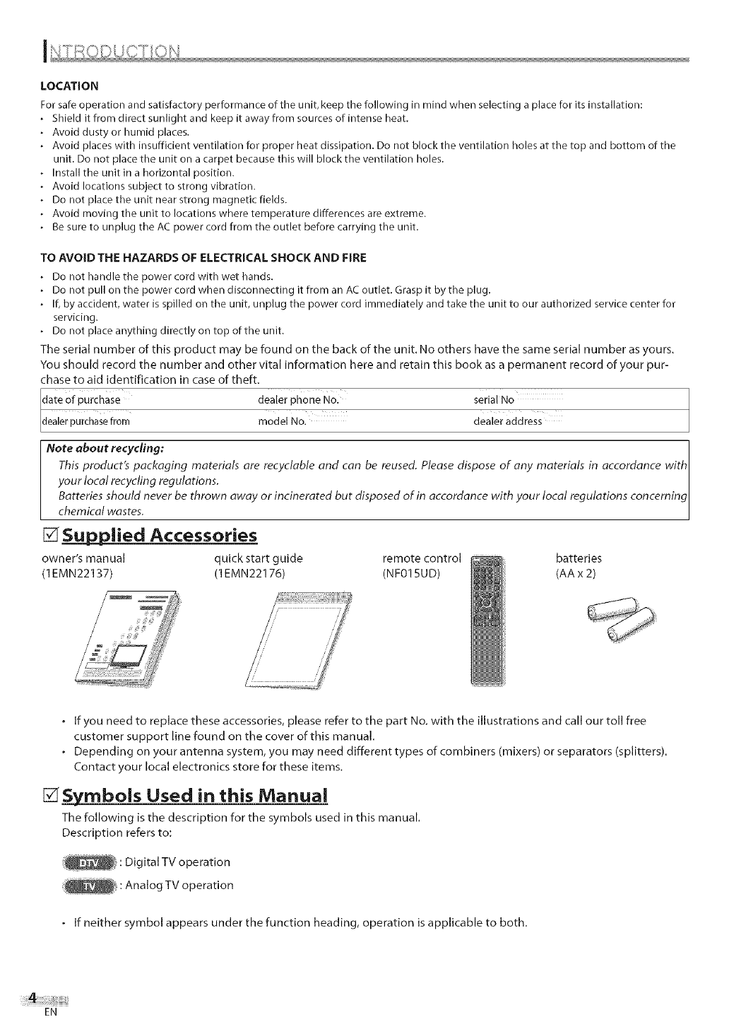 dealer or local power company. For TVs intended to operate from