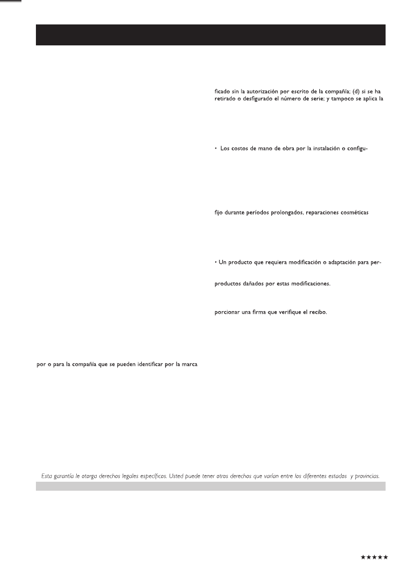spondiente. Esta garantía limitada no se aplica a ningún producto