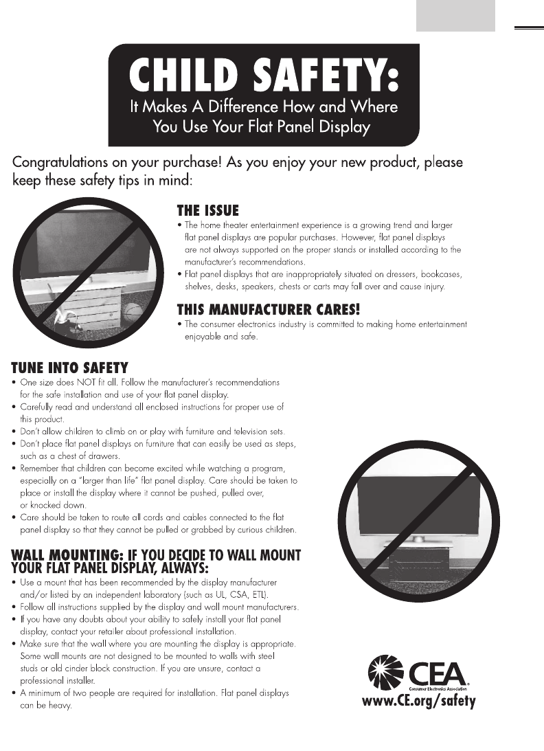 • The recommended Wall Mount Bracket Kit (sold separately)
