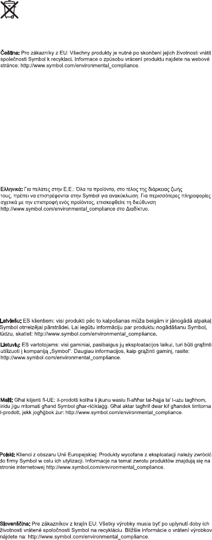 vrniti podjetju Symbol za reciklažo. Za informacije o vraèilu izdelka obišèite: