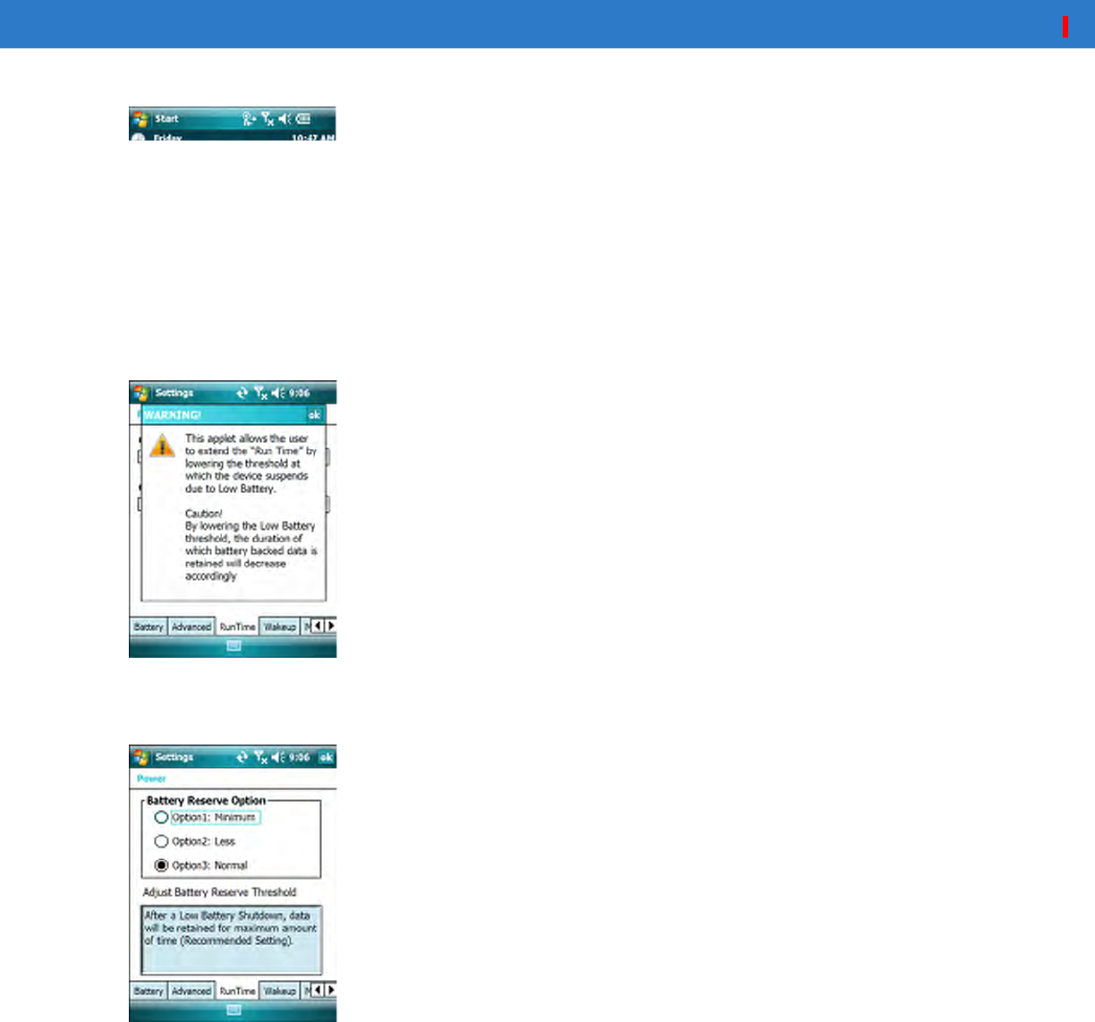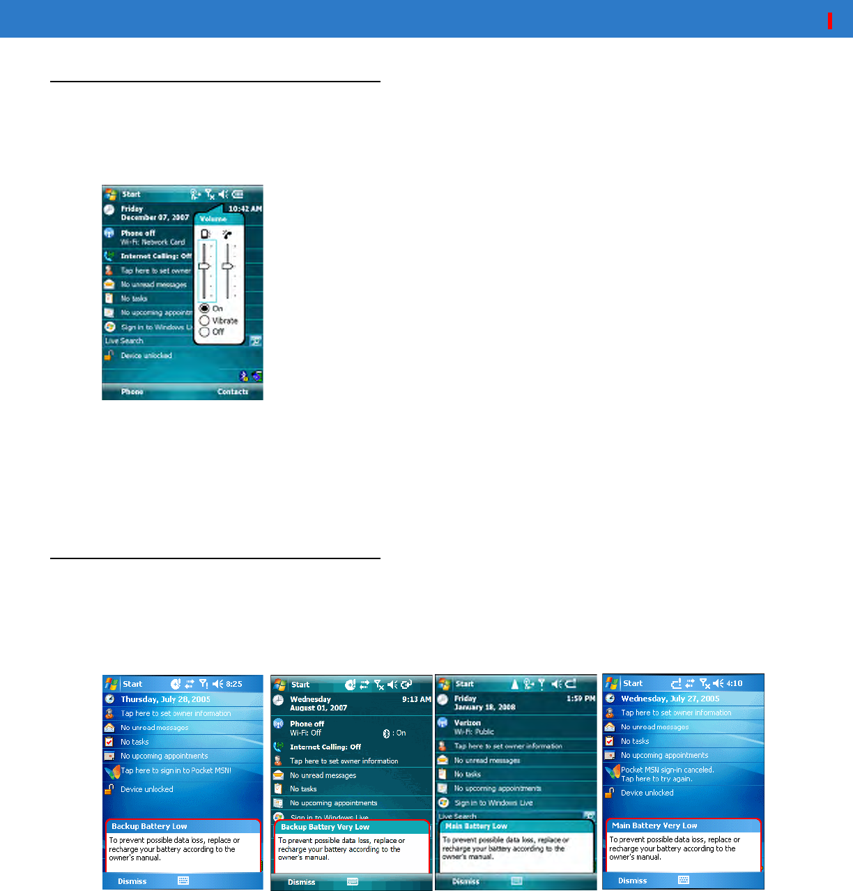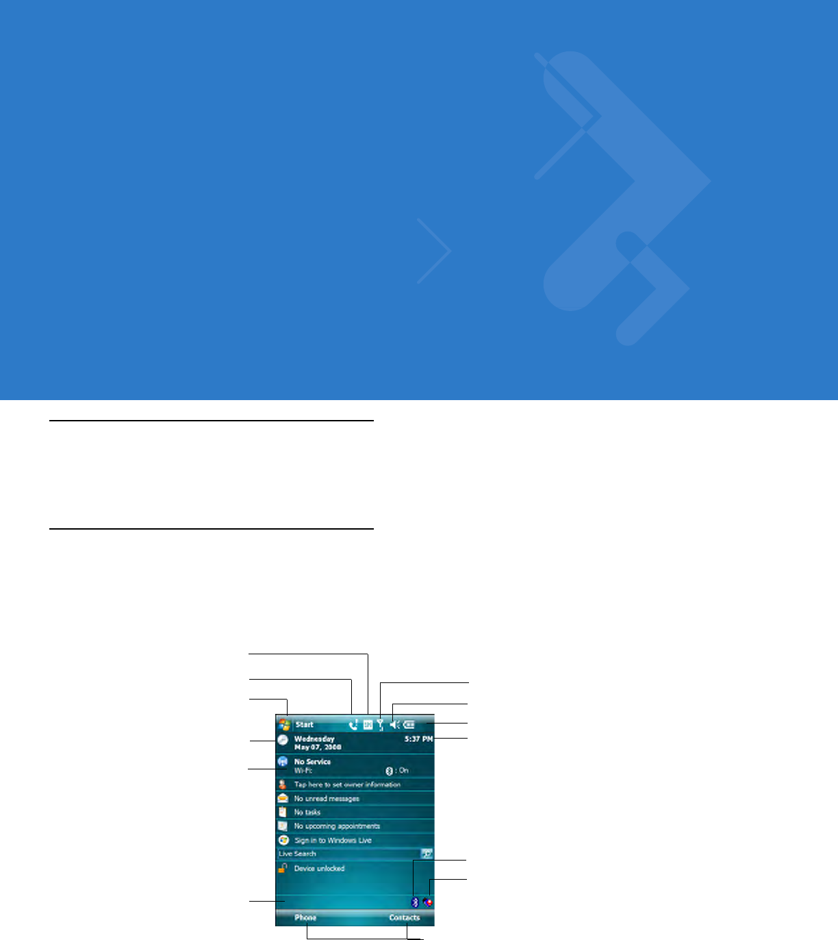 section on the screen to open the associated program. Alternatively, tap Start > Today to display the Today