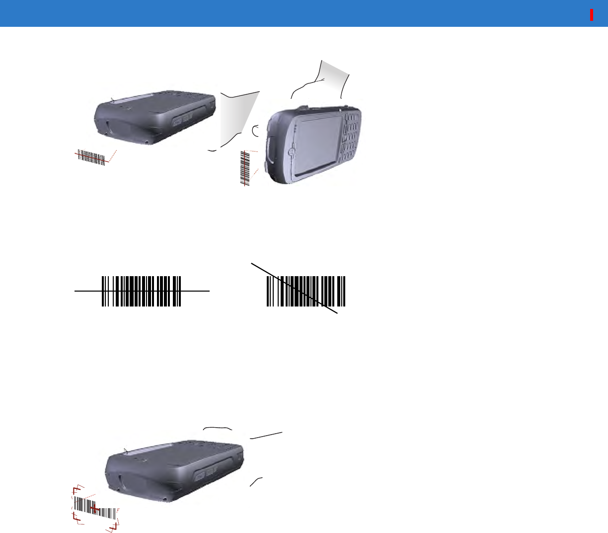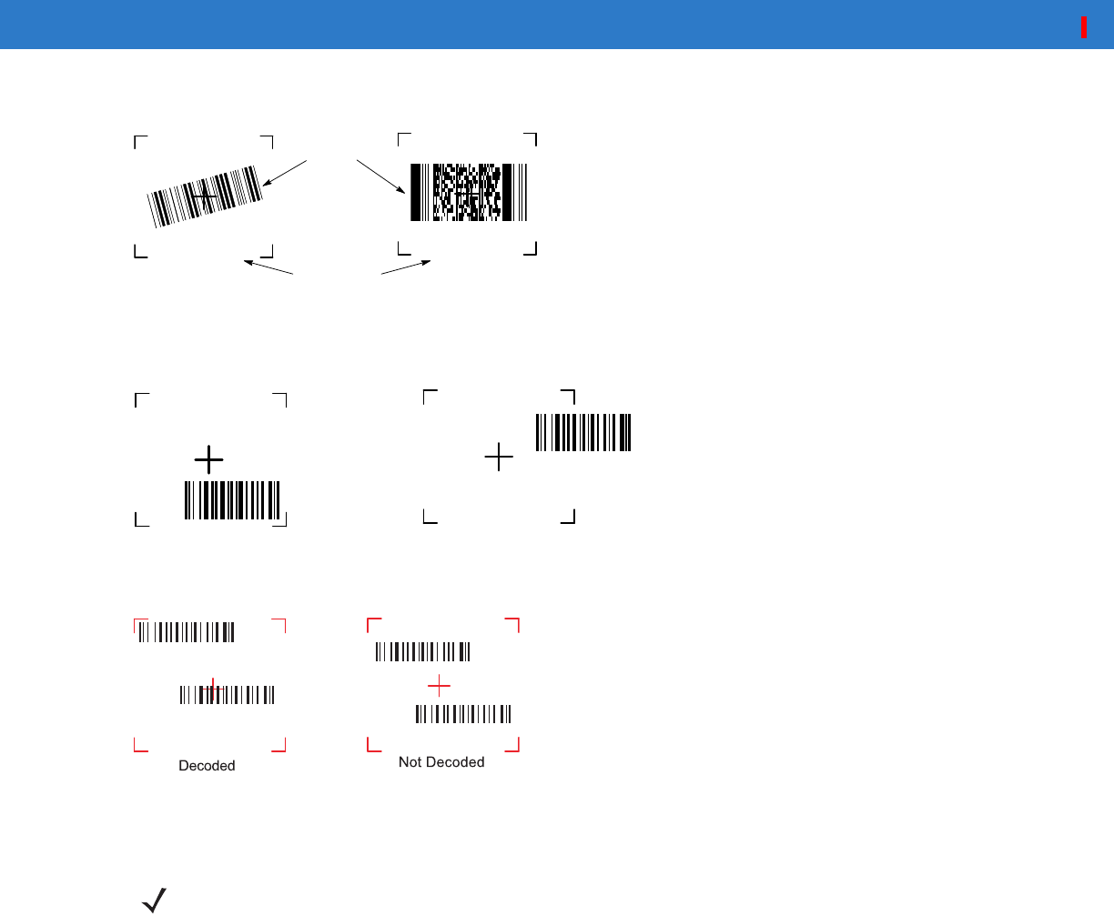 the area formed by the brackets in the aiming pattern. The Scan/Decode LED lights red to indicate that