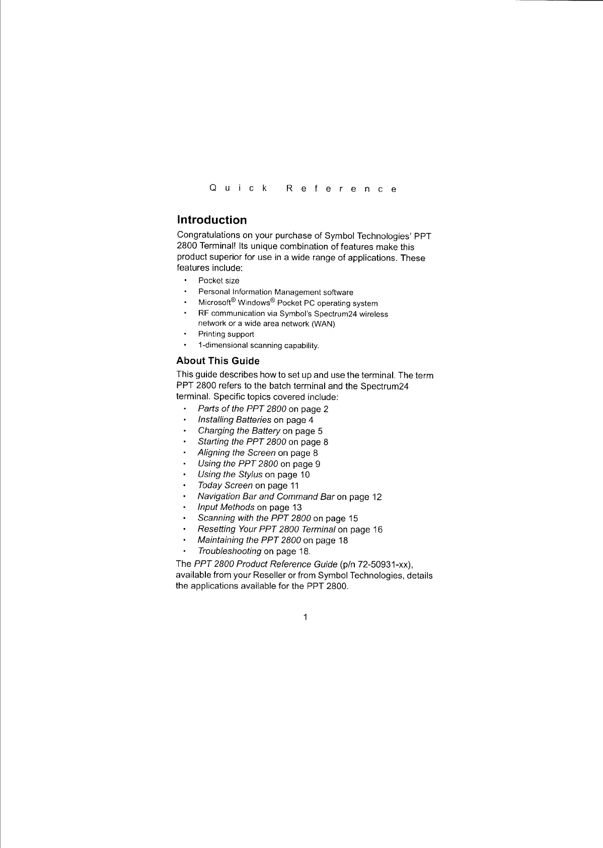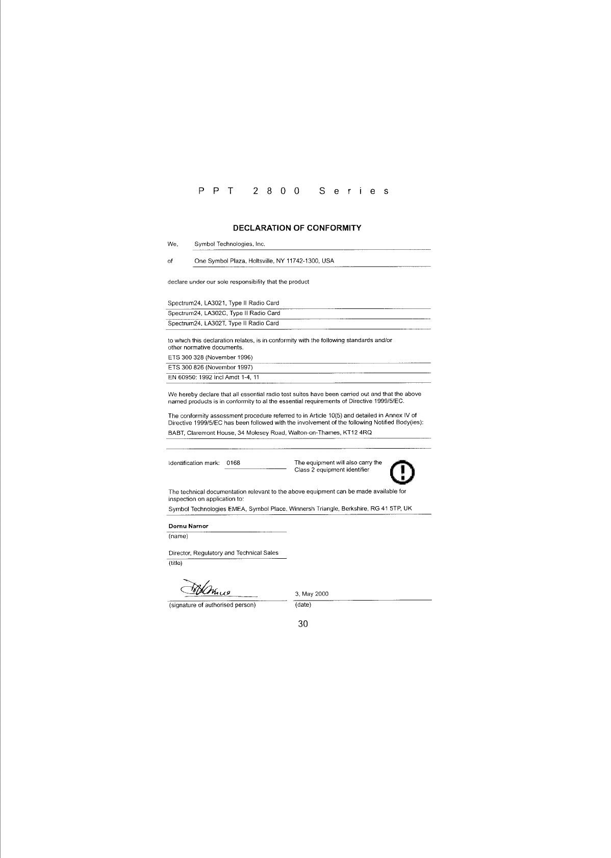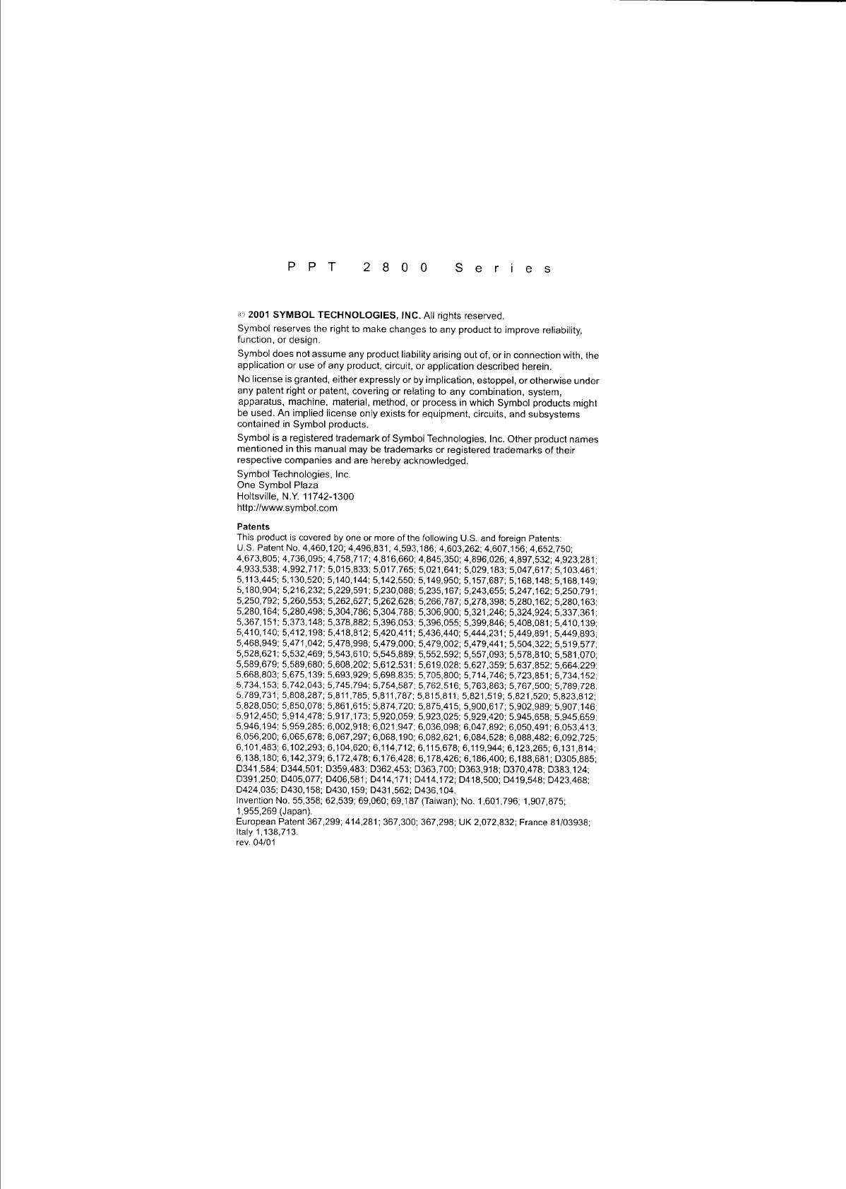 Symbol Technologies PPT28C6 Portable Data Terminal with WLAN PC Module User Manual