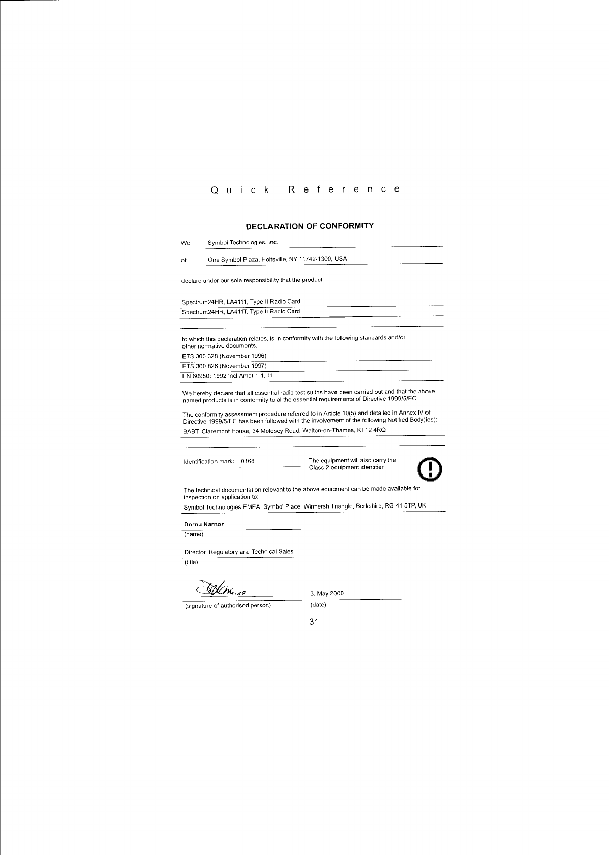Symbol Technologies Inc Portable Data Terminal with WLAN PC Module Users Manual