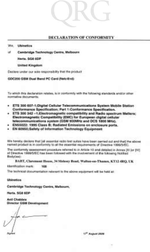 conformity with all the essential requirements of Directive 1999/5/EC.