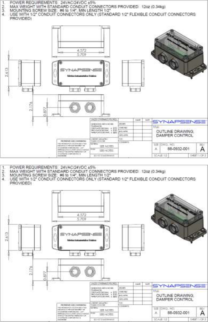 The Wireless Damper Controller acts as an interface between the SynapSense Wireless