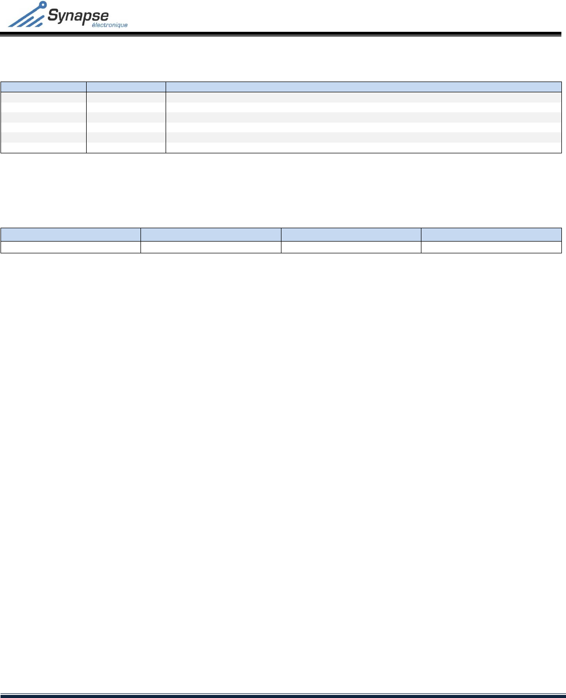 CONFIDENTIALITY: The information in this document is strictly confidential and is the sole property of Synapse Électronique Inc. This
