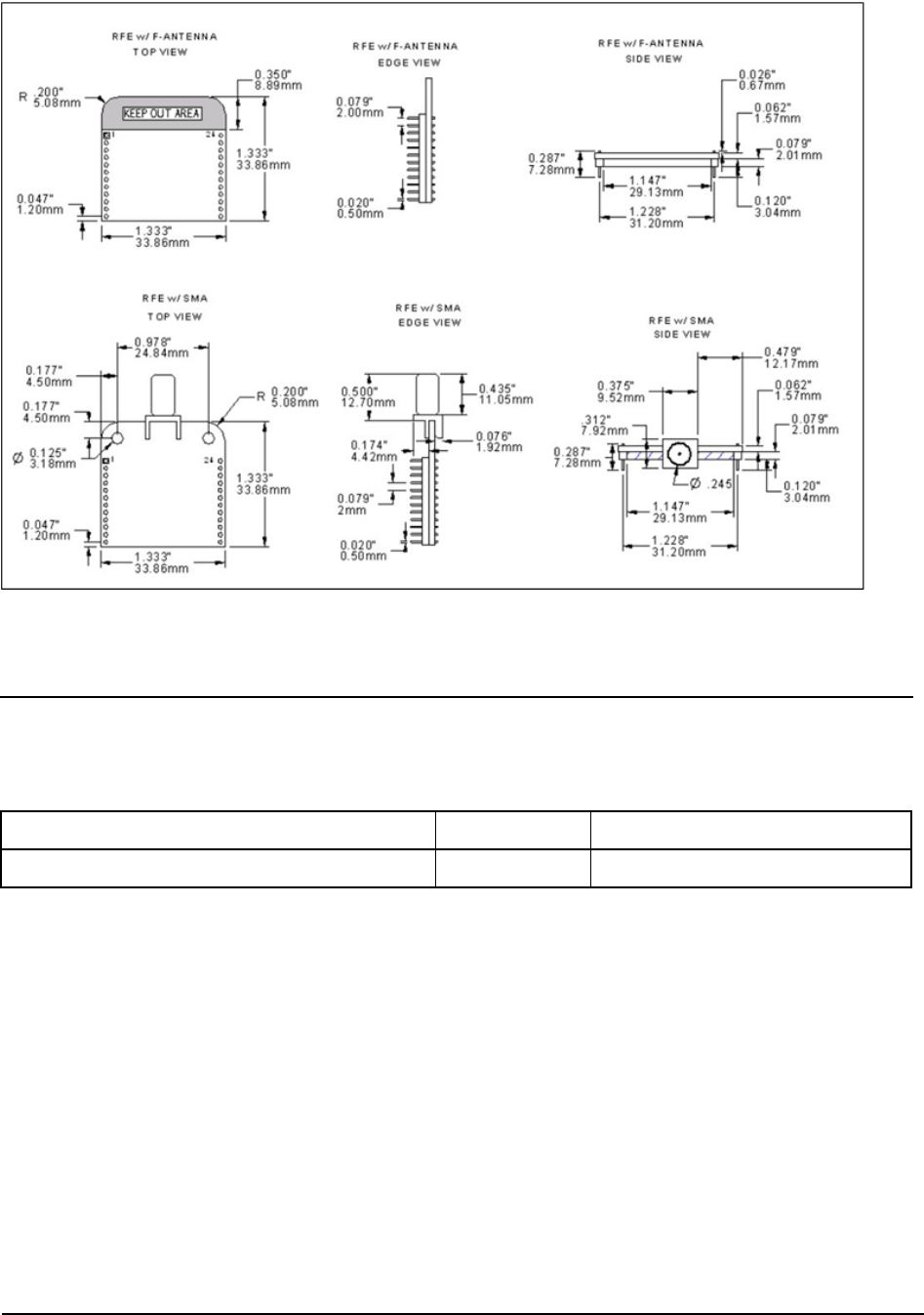 below in Table 2.1. The required antenna impedance is 50 ohms. The RF200PF1 has a built-in F-